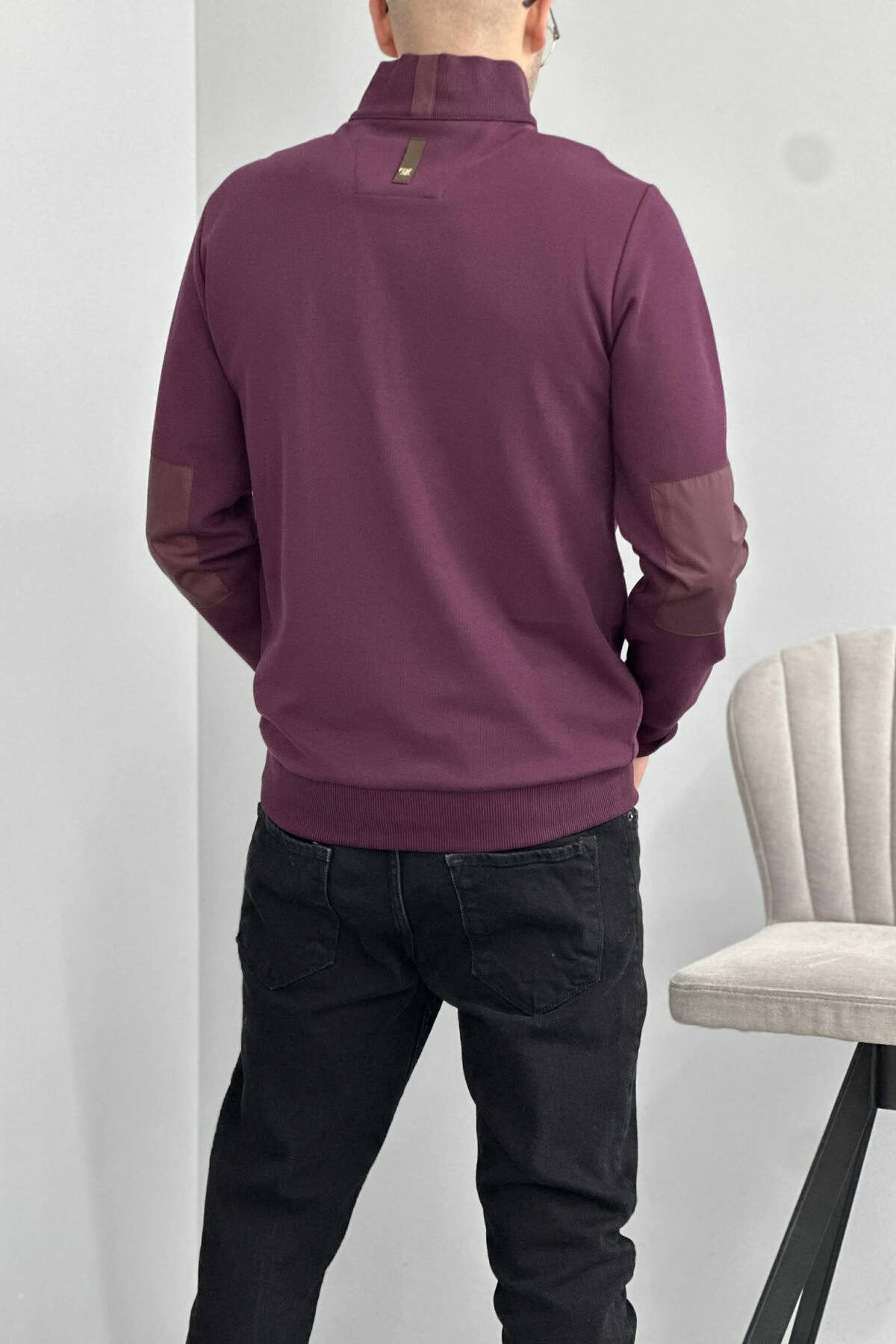 BLUZË ME JAKË ME ZINXHIR DHE LOGO TË VOGËL PËR MESHKUJ NË NGJYRË VISHNJË
