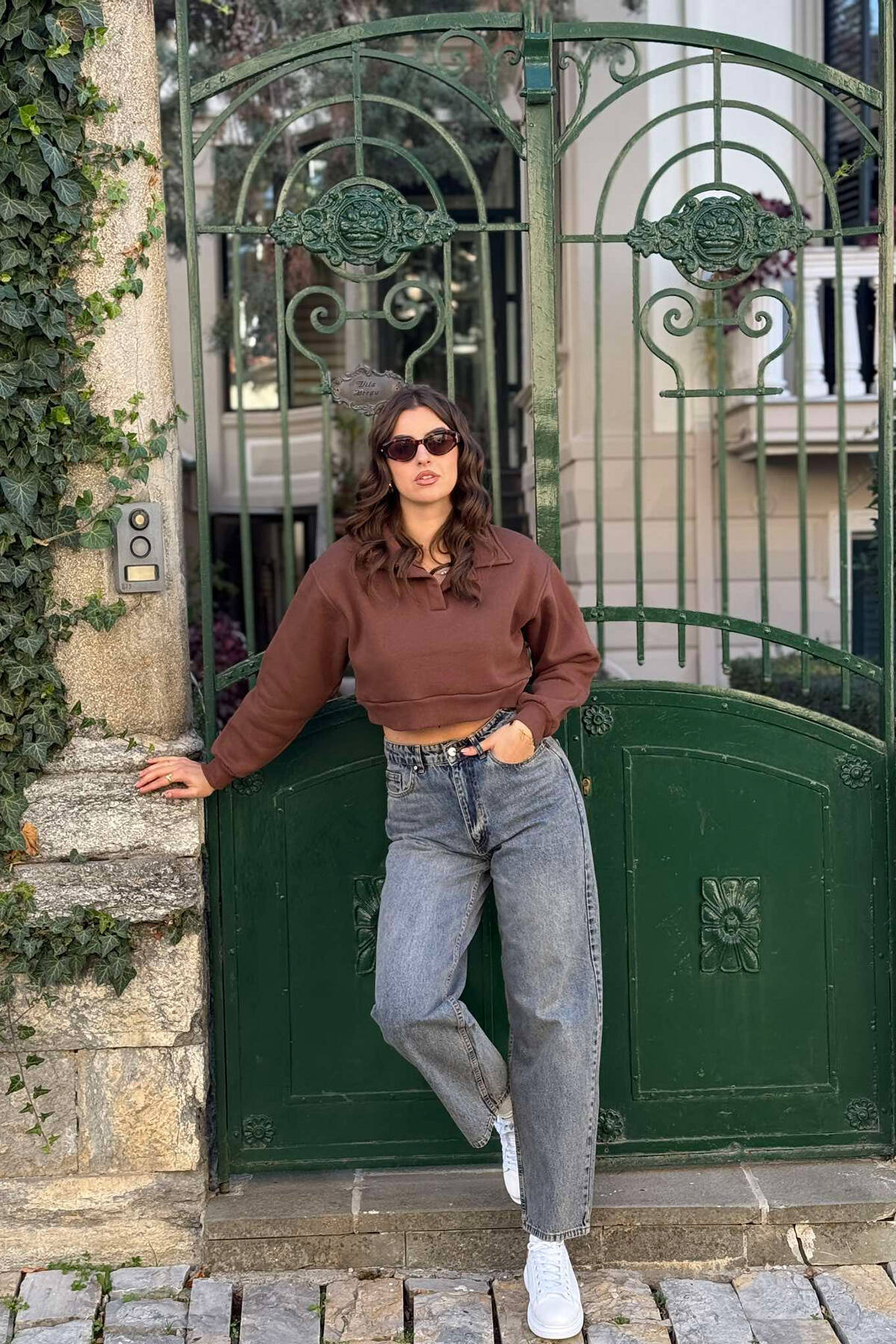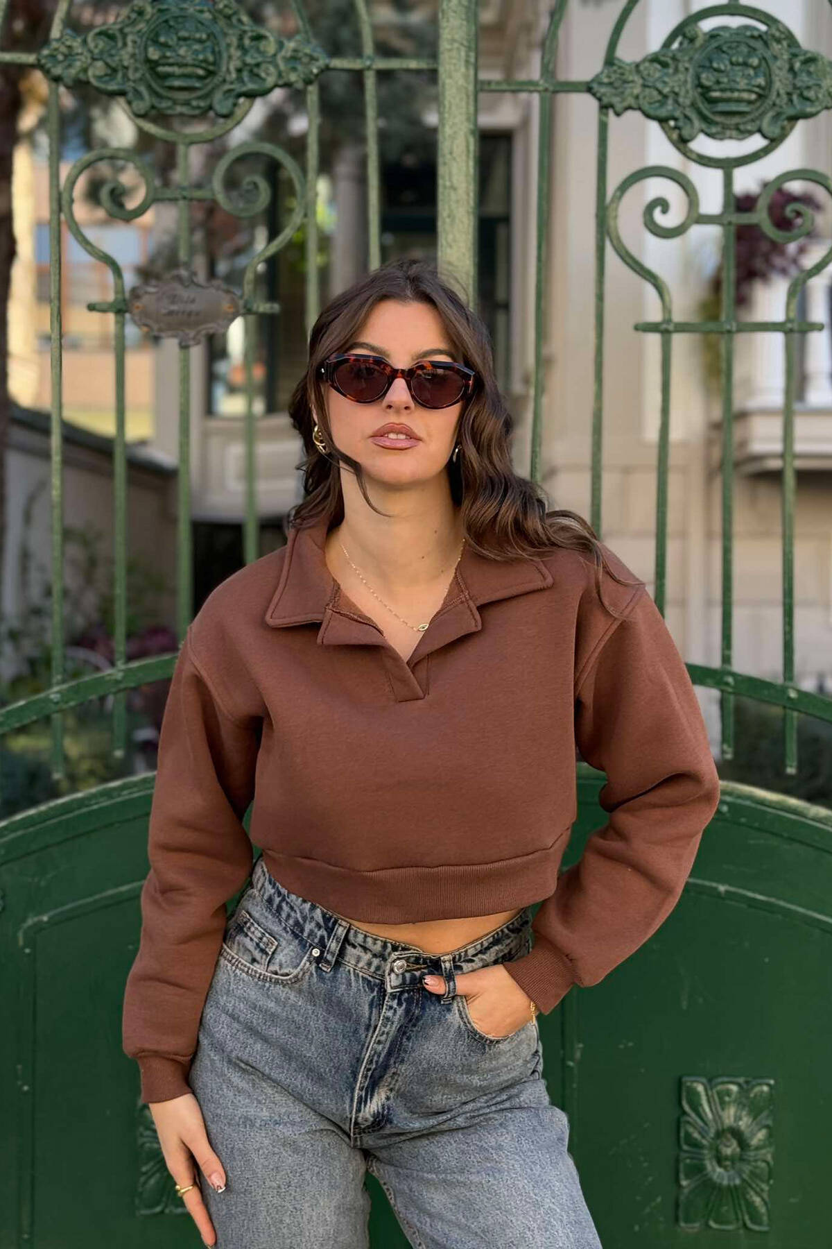 Bluzë Me Jakë Polo për Femra Në Ngjyrën Kafe
