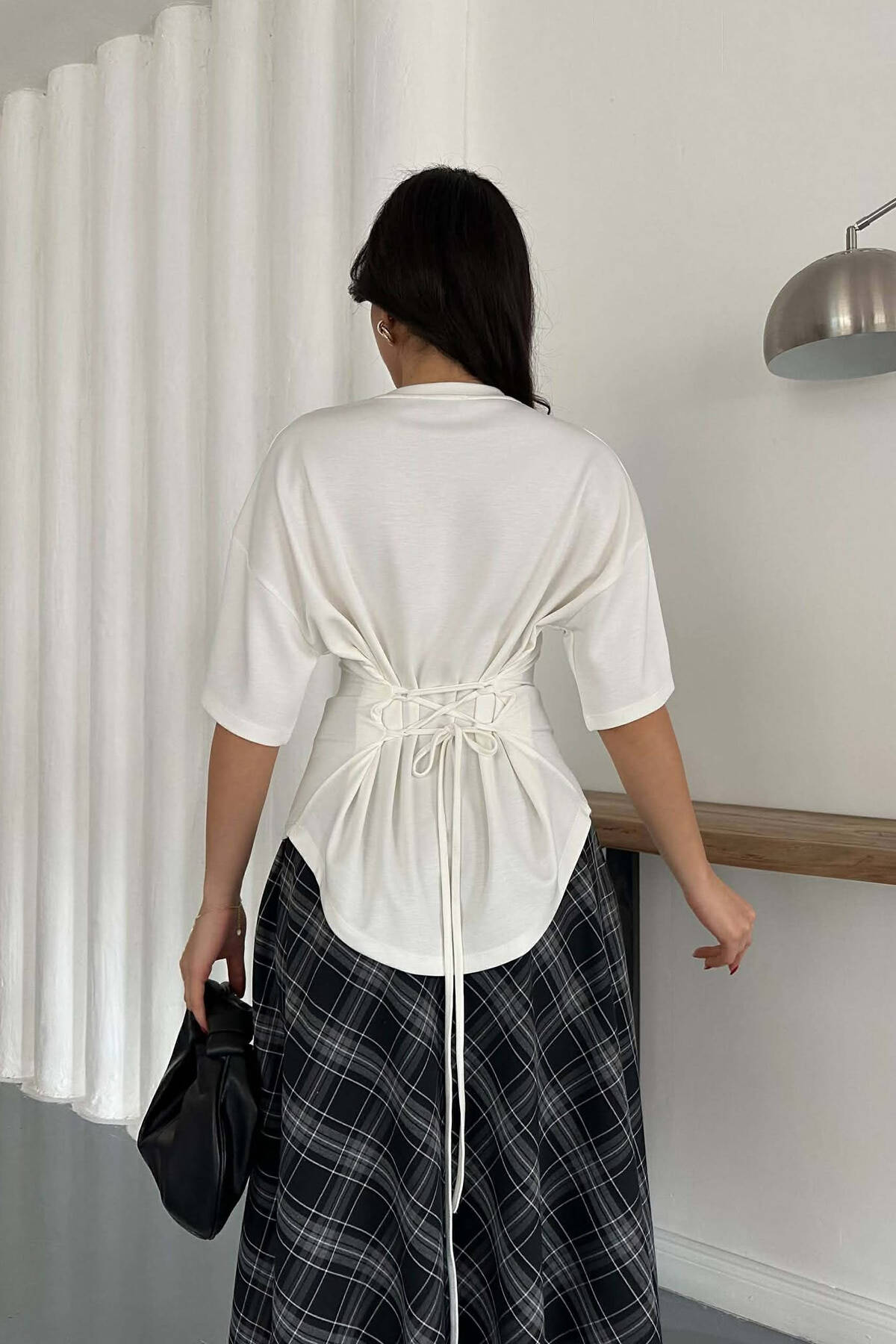 BLUZE NJE NGJYRESHE ME DETAJIN E LIDHSEVE PER FEMRA NE NGJYRE TE BARDHE