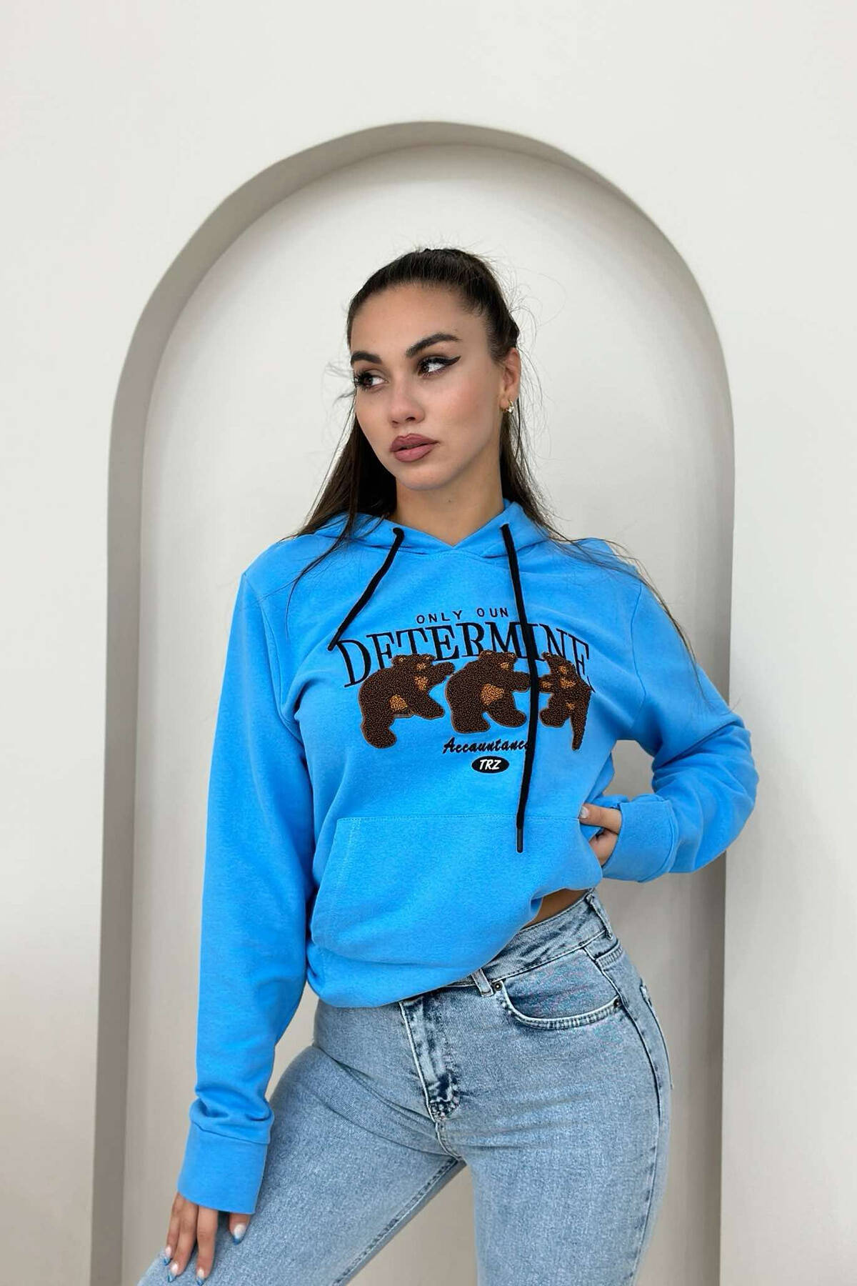 Bluzë Pambuku Me Kapuc Për Femra Në Ngjyrë Blu E Zbardhur