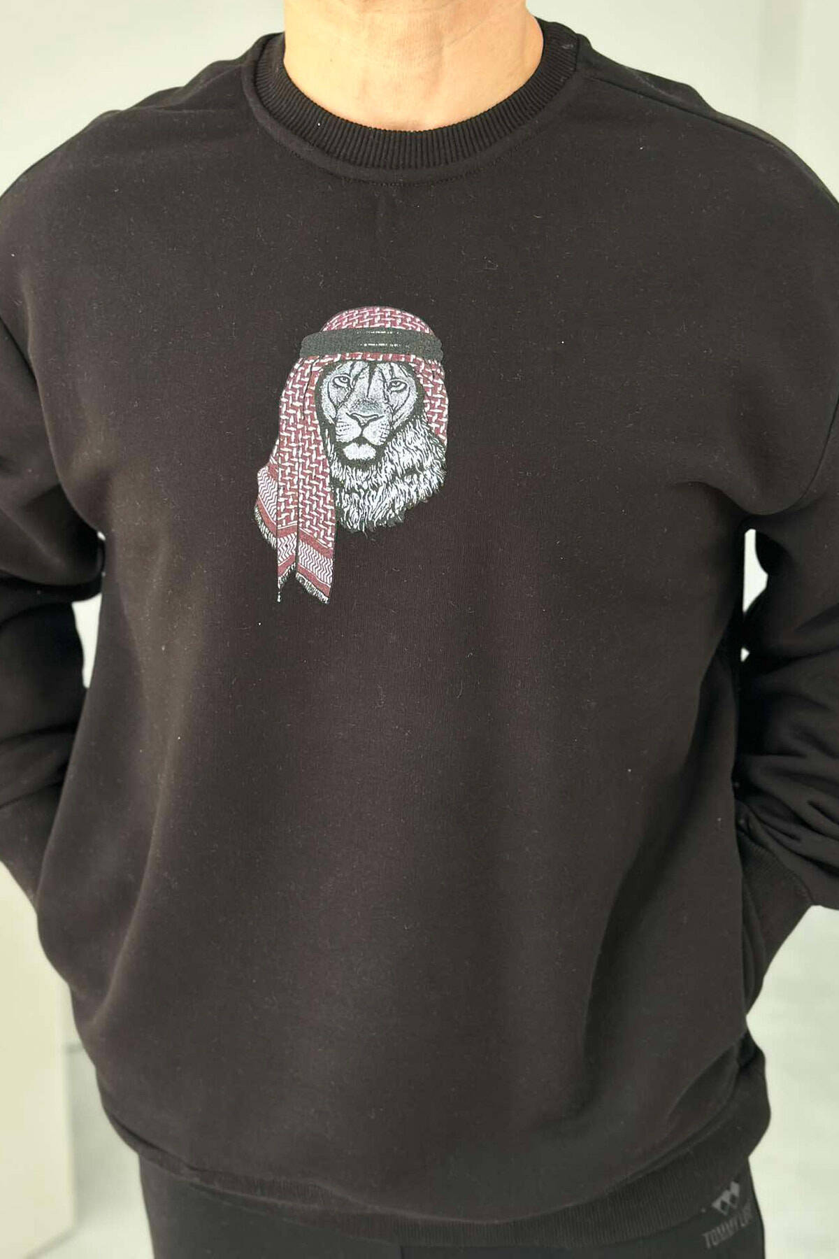 Sjellim për ju bluzë për meshkuj me jakë të rrumbullakët , me imazhin e një luani në pjesa para , dhe me detajet e dy xhepave anësorë , vjen ne nje prerje te gjere duke e bere ate super komde .