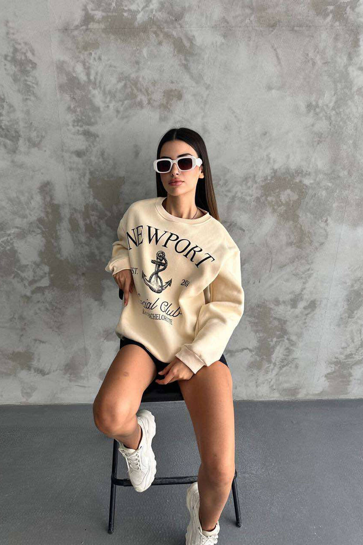 BLUZË PËR FEMRA ME LOGO NEWPORT NË NGJYRË BEZHË