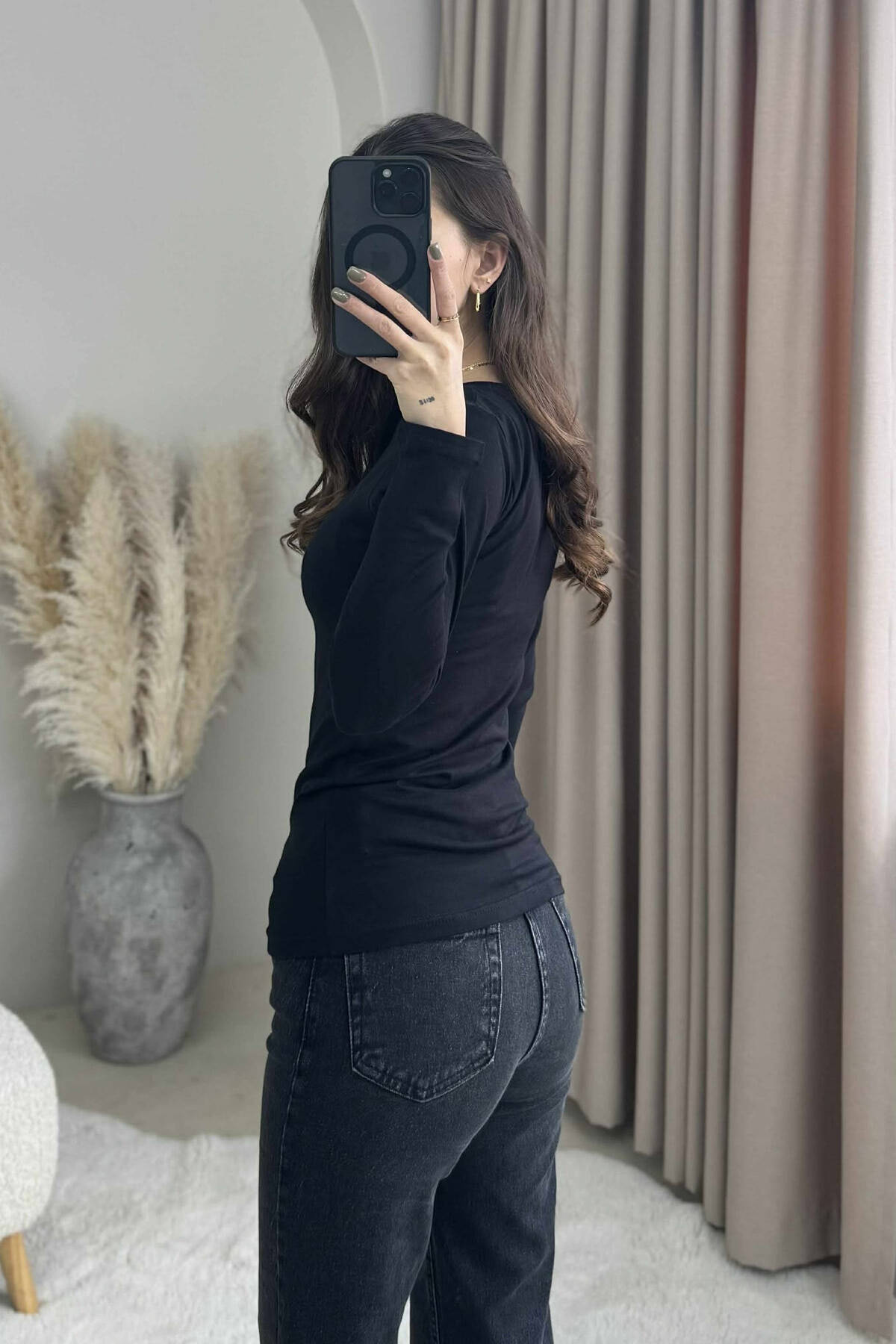 Më njoftoni kur të rikthehet"Bluzë me mëngë të gjata me qafë të rrumbullakëta ne ngjyre te zeze . Përqafoni elegancën klasike në bluzën tonë të gjithanshme. E krijuar me kujdes, ajo ndërthur në mënyrë të përsosur komoditetin dhe stilin.