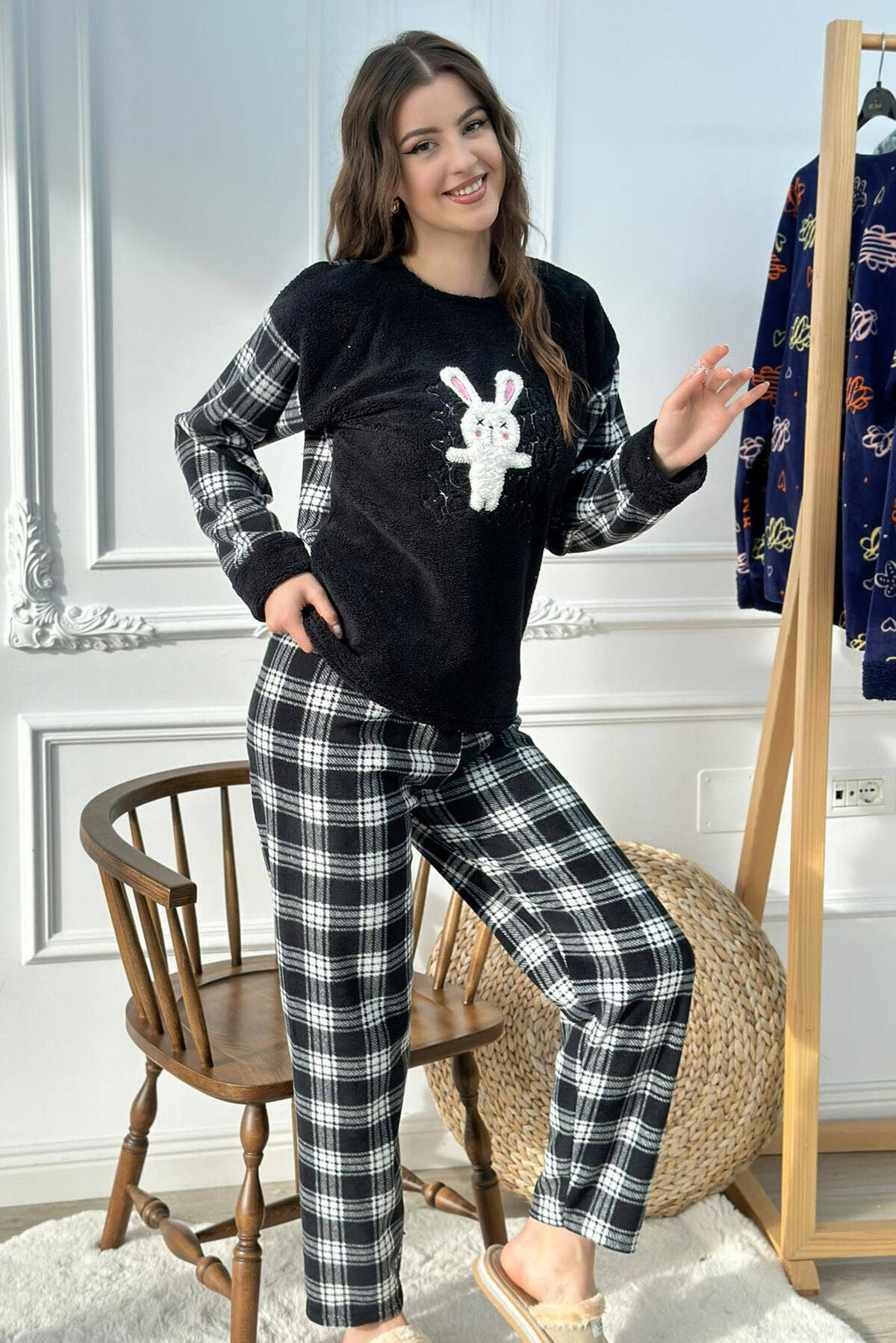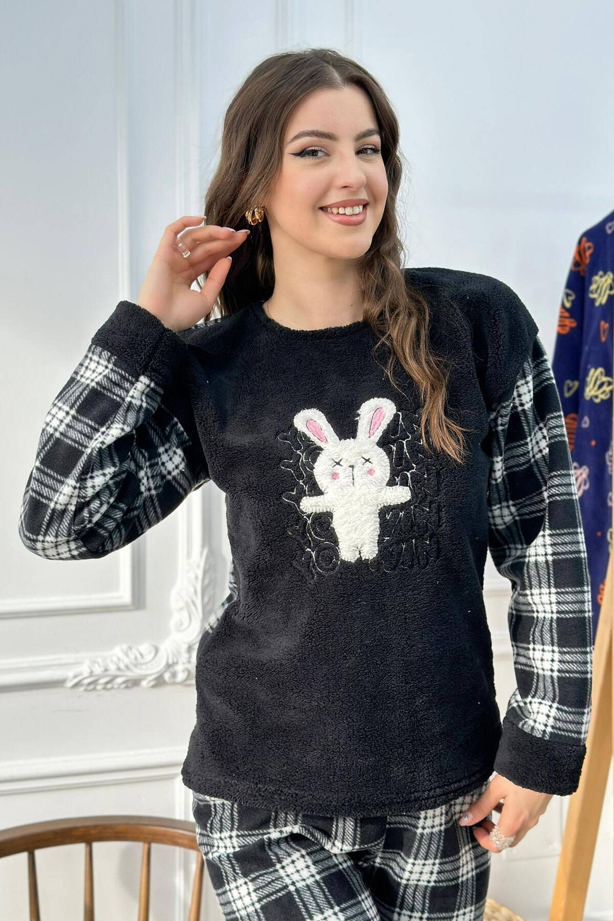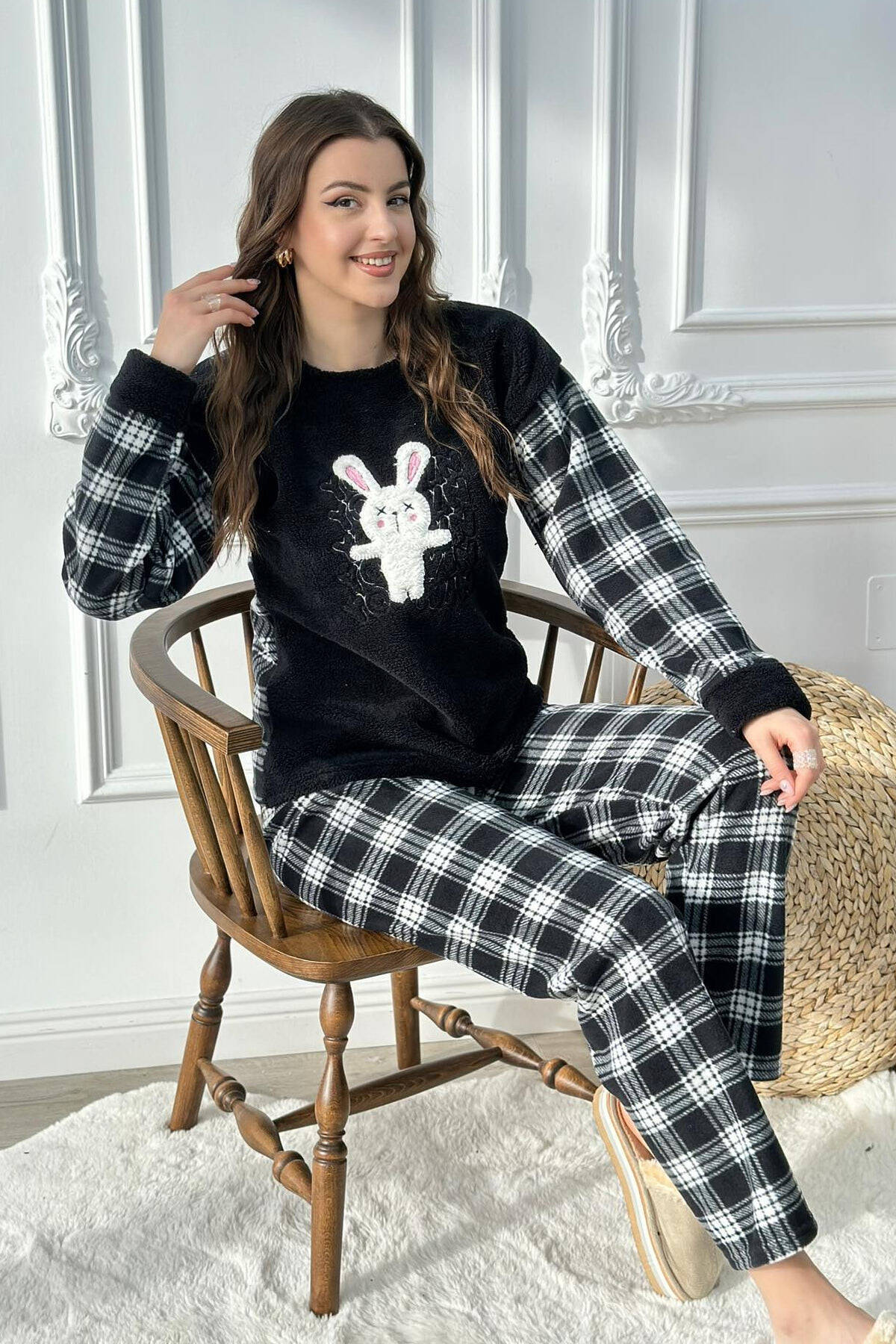 Më njoftoni kur të rikthehetFlini si në vendin e ëndrrave me pizhamet tona të grave me imazh nje lepurush në ngjyre te zeze. Me një motiv simpatik lepurushi, ky set kombinon rehatinë dhe stilin për një gjumë të rehatshëm të natës me një prekje elegance lozonjare."