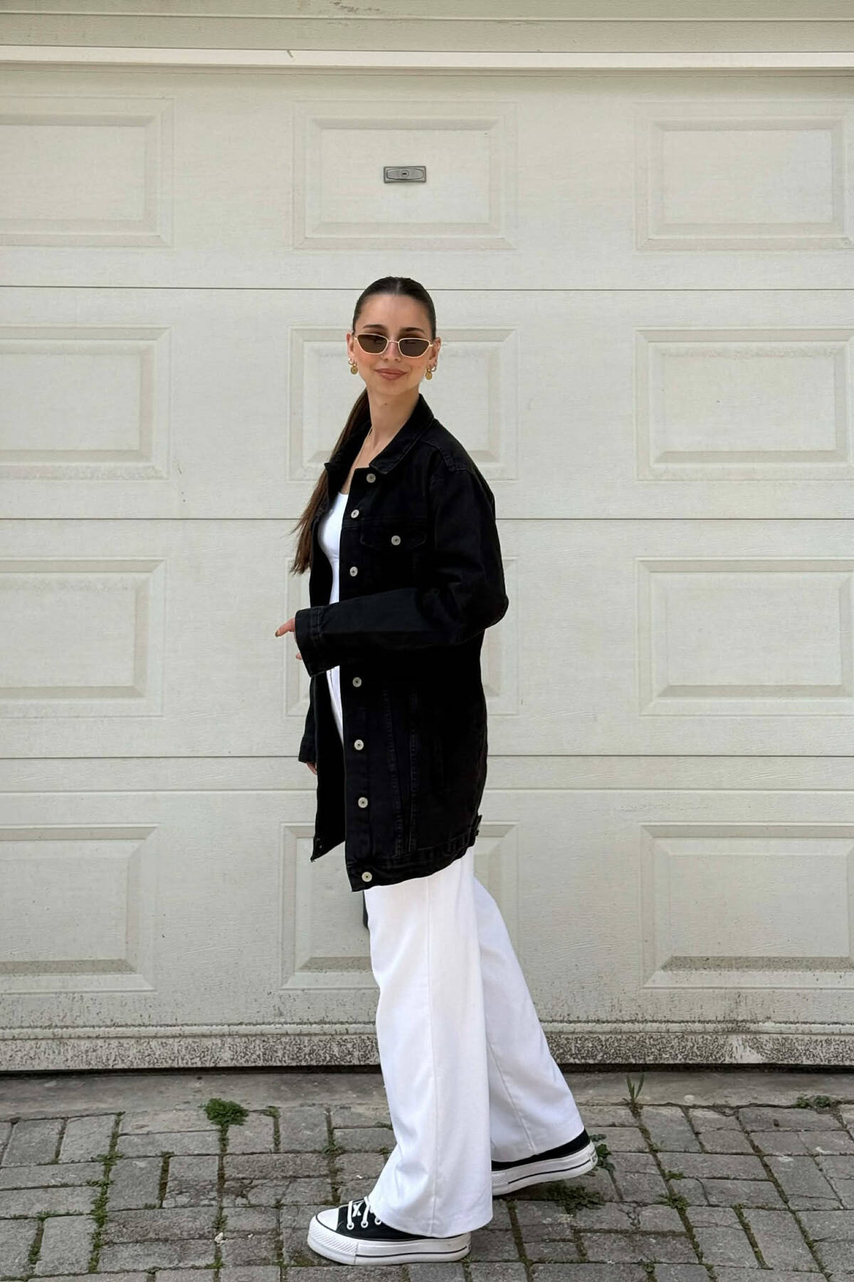 BUTTONED ONE COLOR DENIM WOMEN JACKET BLACK/ E ZEZE