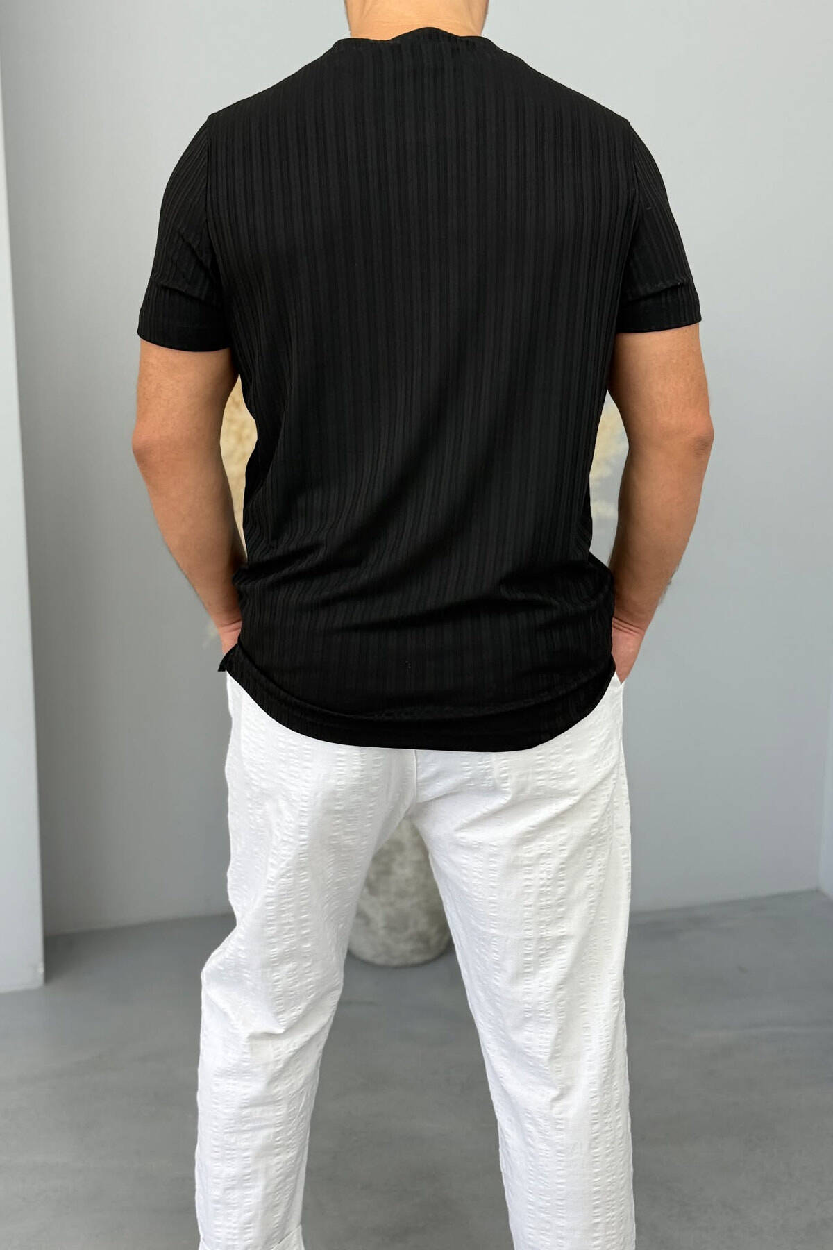 BUTTONED ONE COLOR MEN T-SHIRT BLACK/ E ZEZE