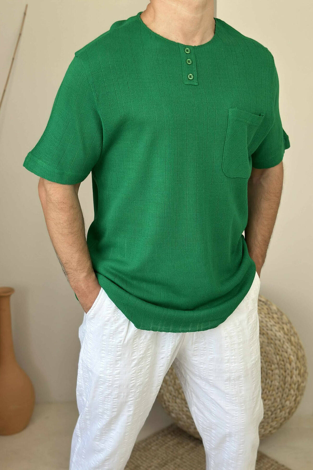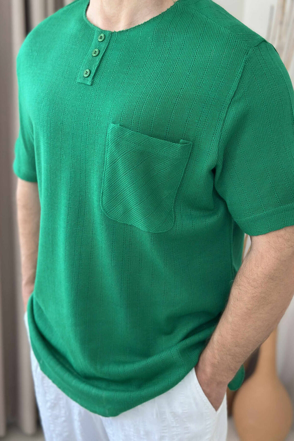 BUTTONED ONE COLOR MEN T-SHIRT GREEN/JESHILE
