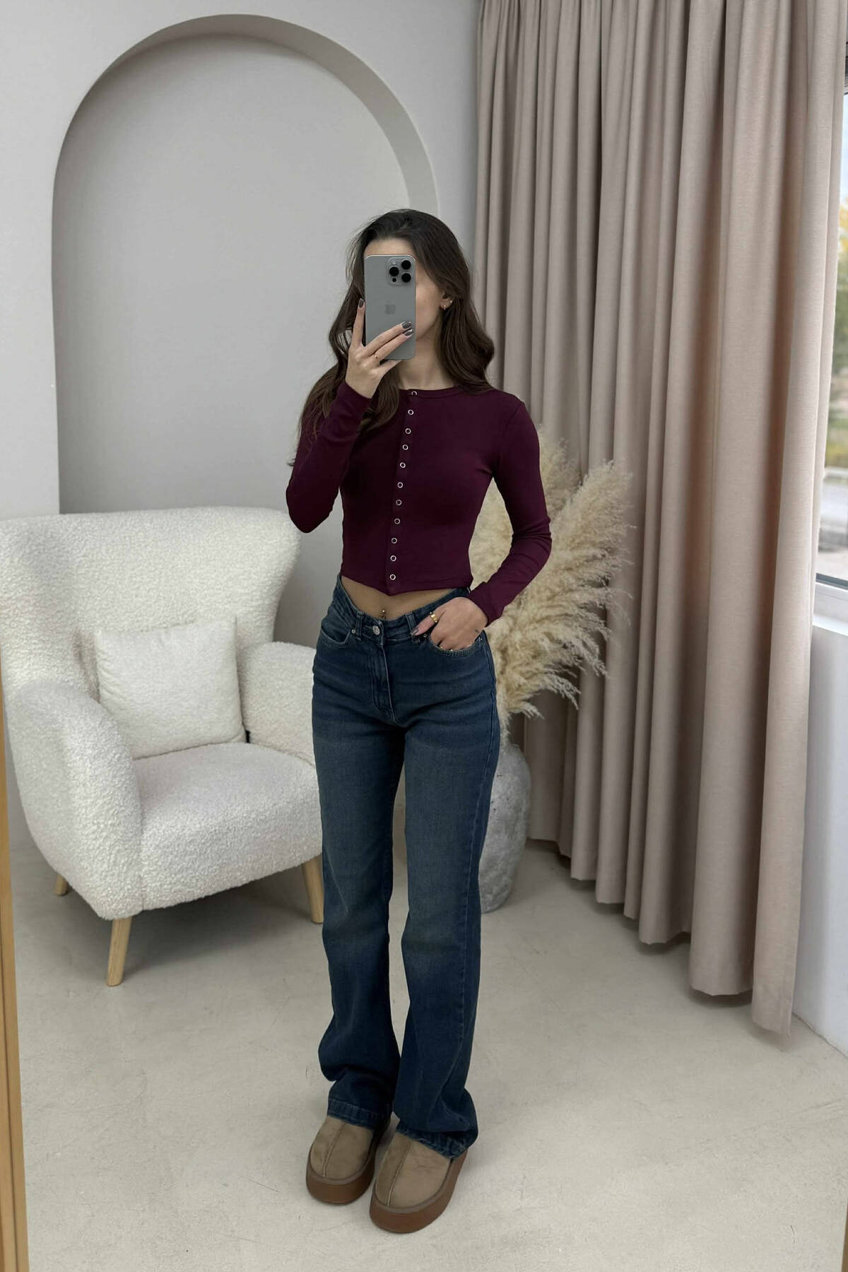 BUTTONED ONE COLOR WOMEN SWEATSHIRT BURGUNDY/VISHNJE