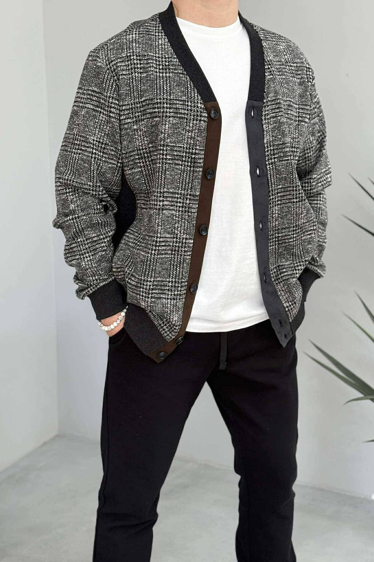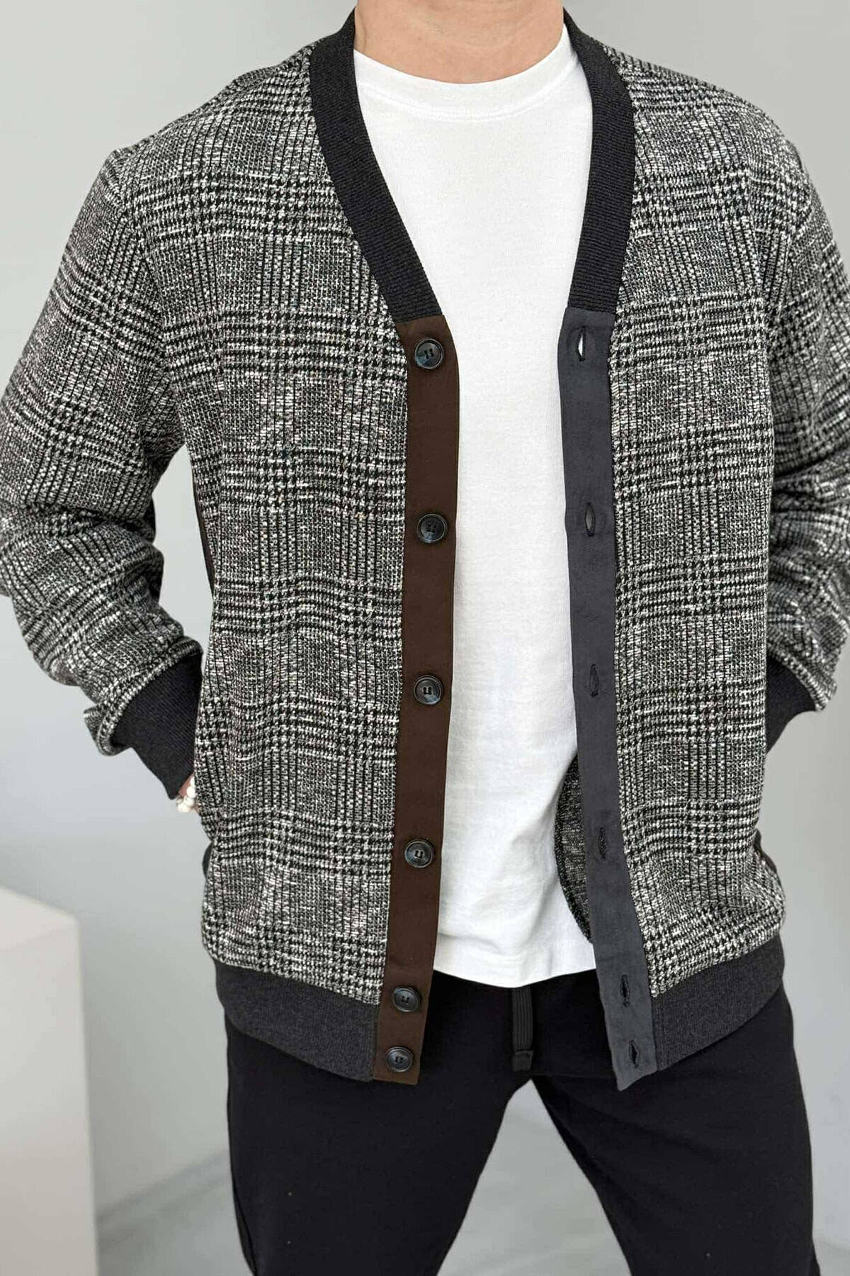 HIGH NECK MEN CARDIGAN DARK GREY/GEE
