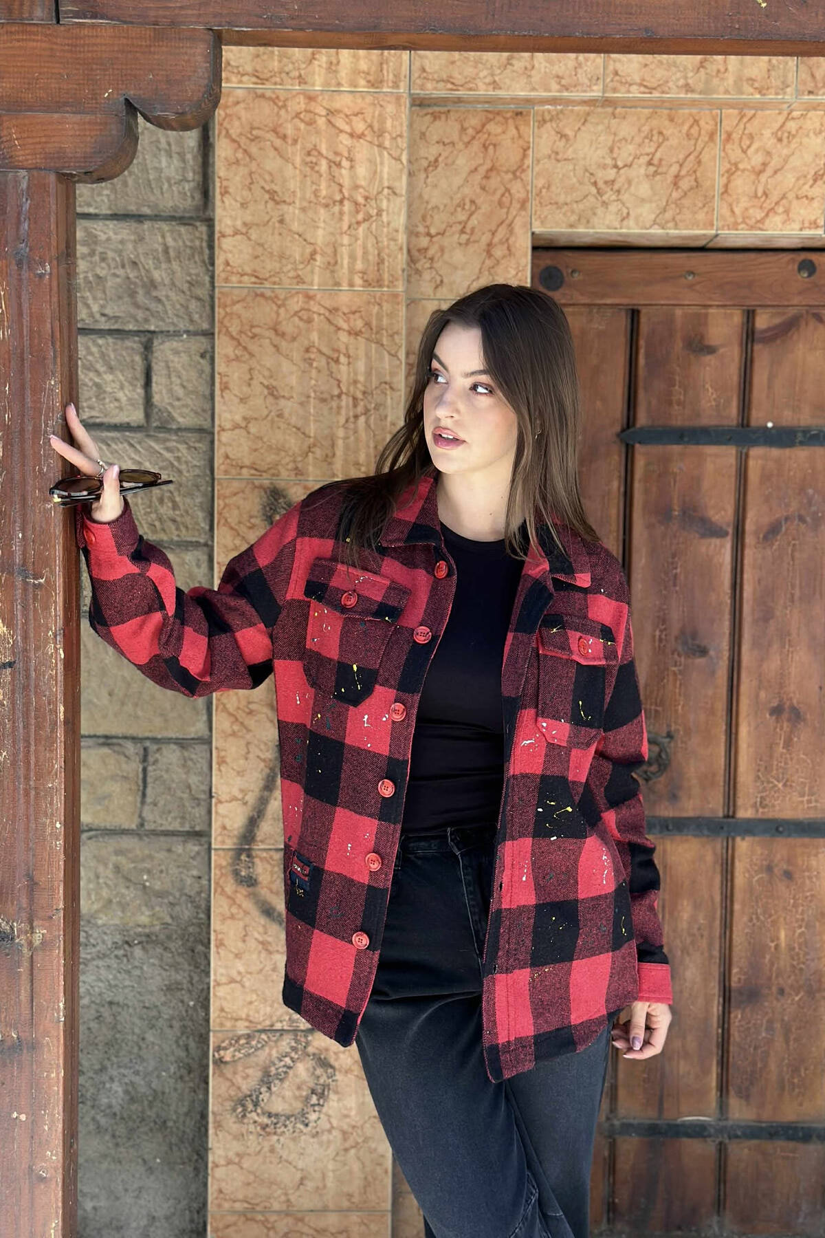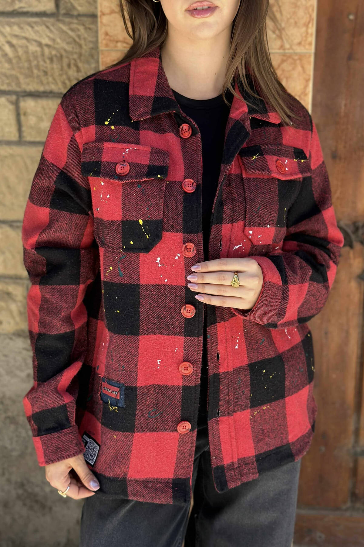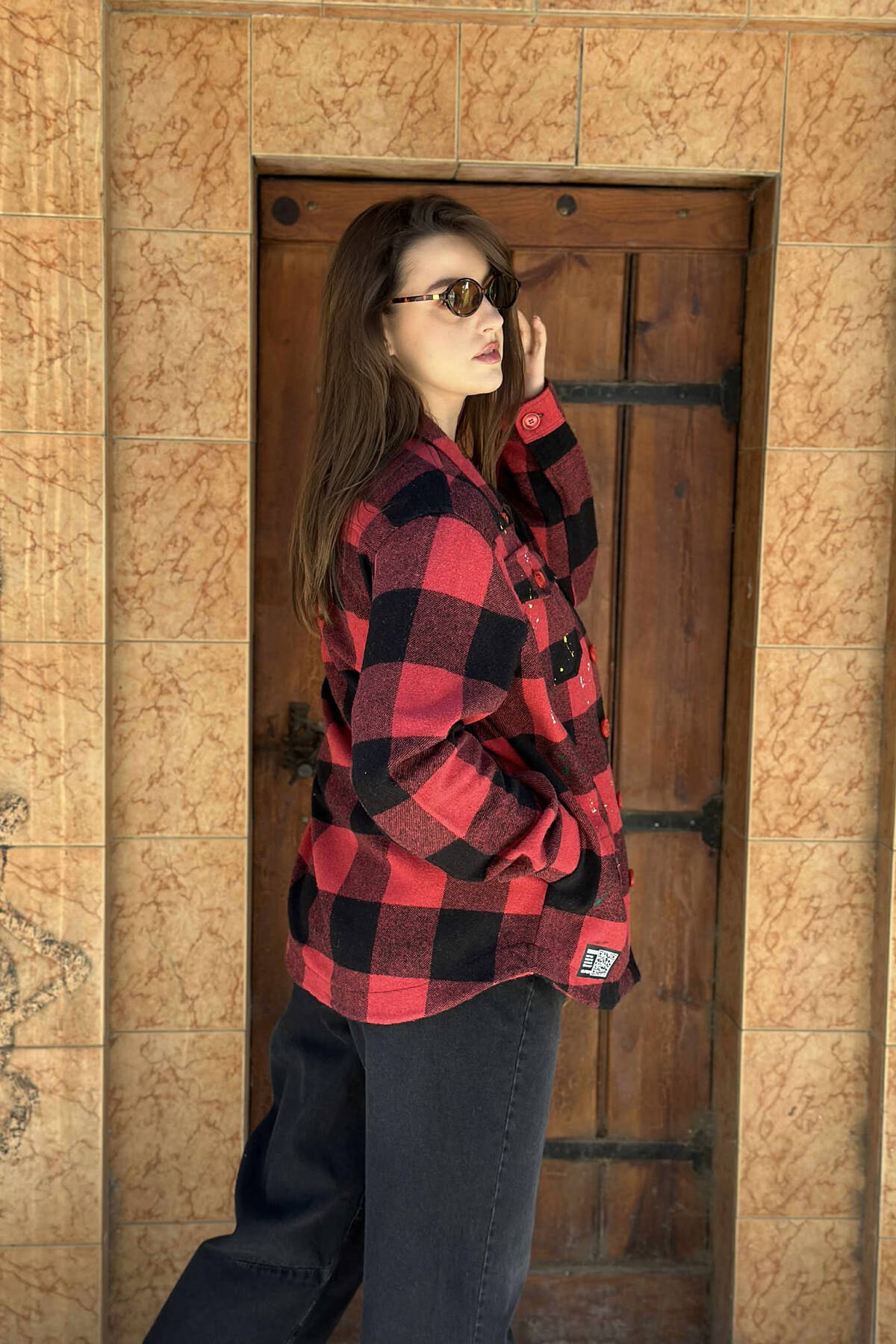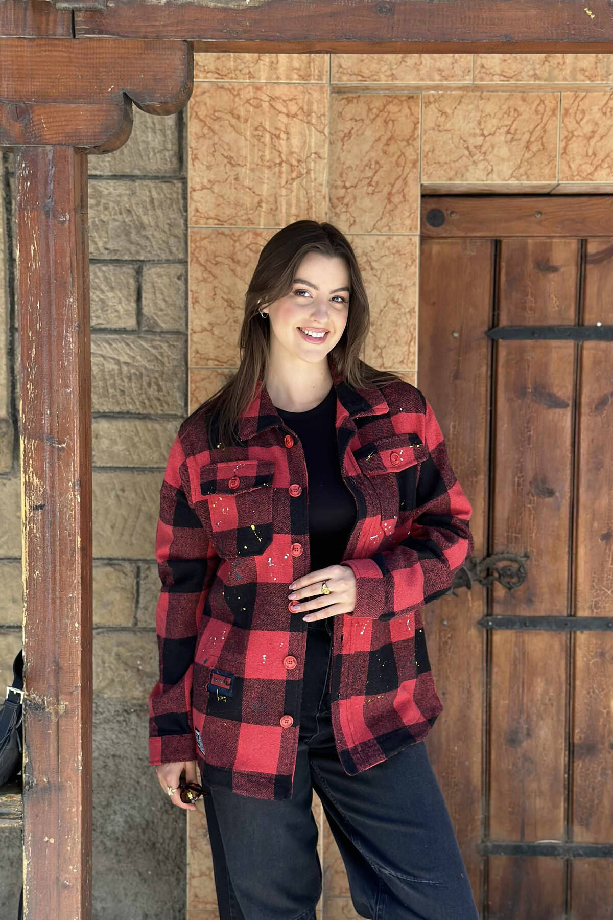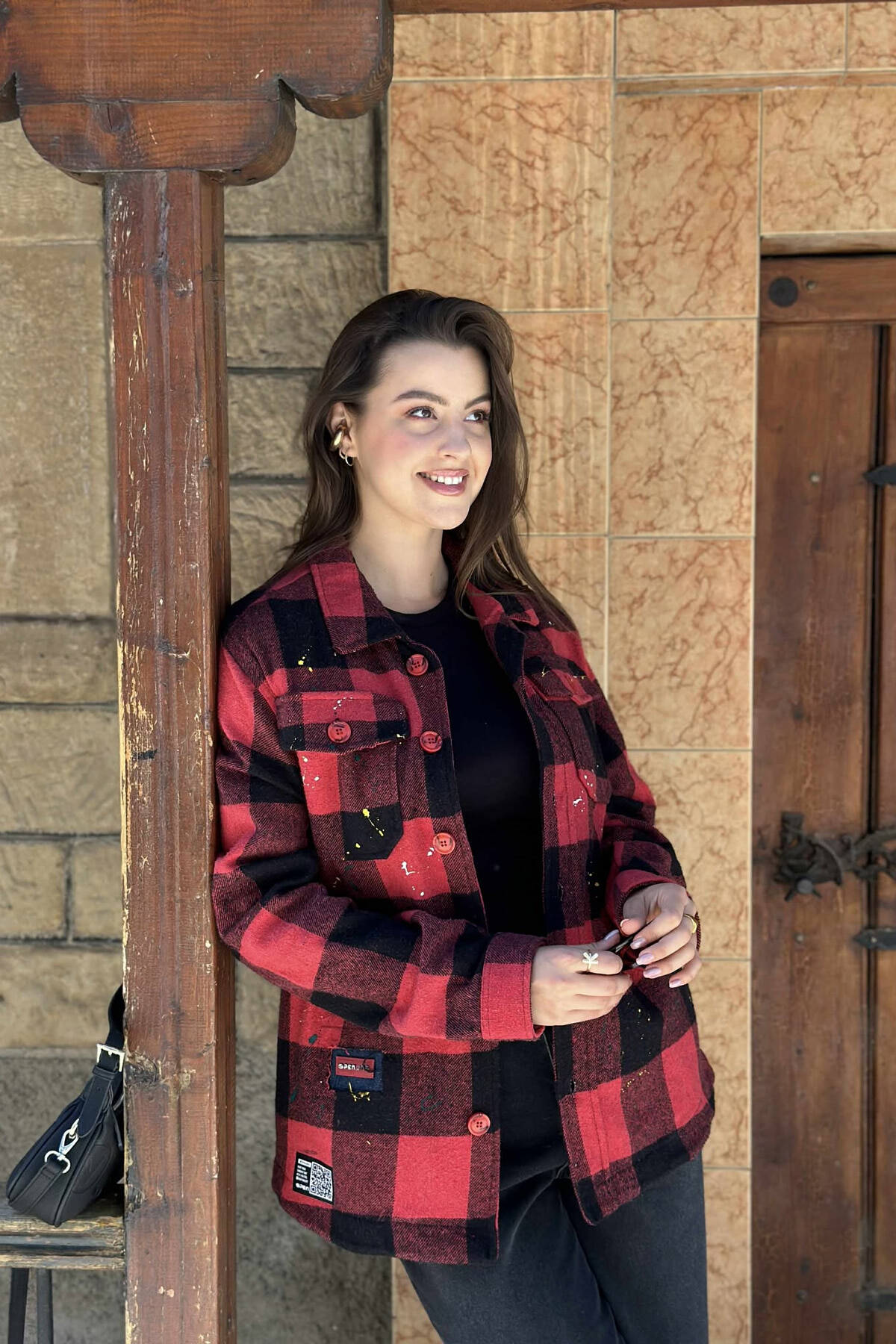 XHAKETË ME DIZJAN KATRORËSH TË PIKTURUAR DHE ME KOPSA PËR FEMRA NË NGJYRË TË KUQE