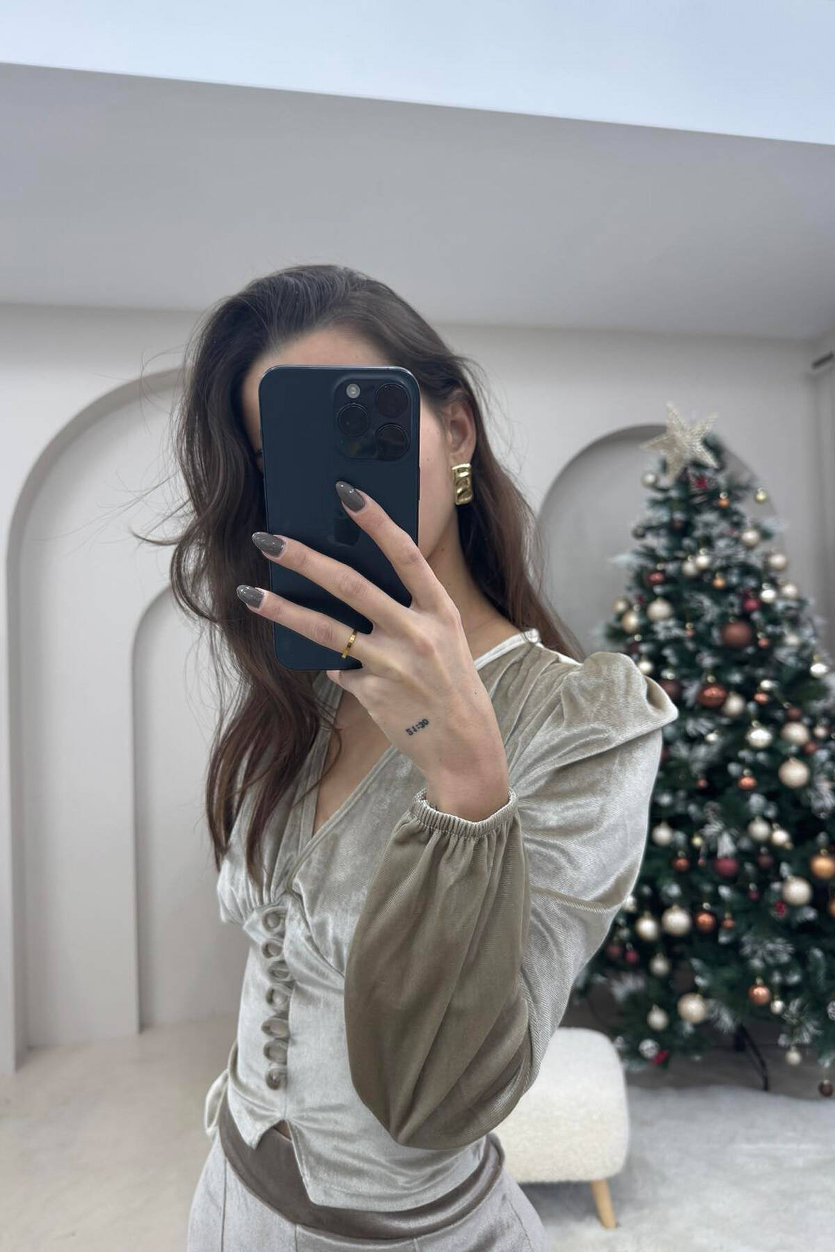 BUTTONED WOMEN VELVET TOP BEIGE/BEZHE