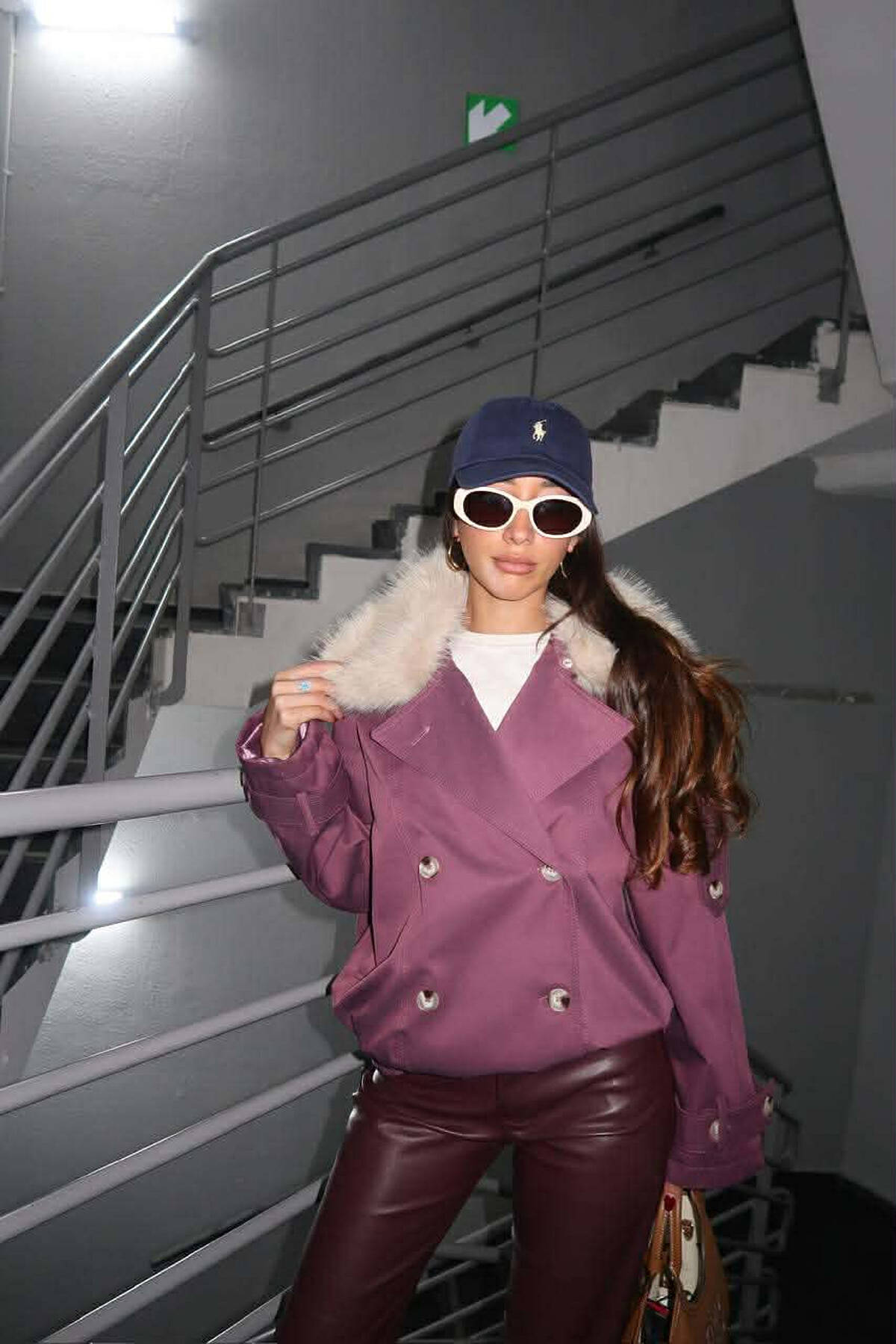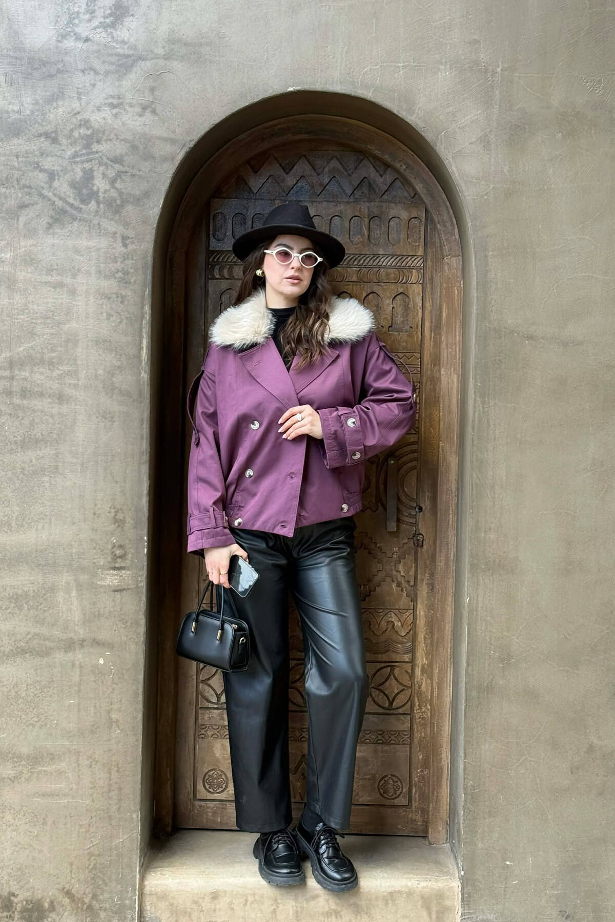 BUTTONS DETAIL FLUFFY NECK SHORT WOMEN JACKET PURPLE/LEJLA