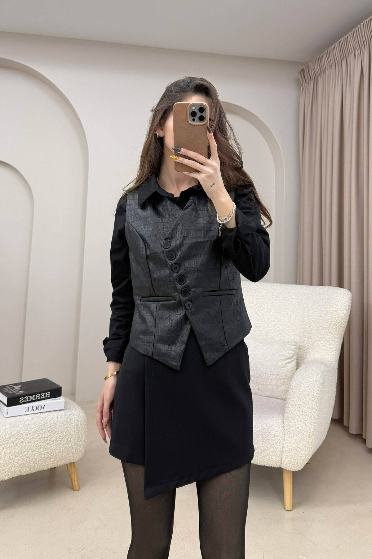 BUTTONS DETAIL LEATHER WOMEN VEST BLACK/ E ZEZE