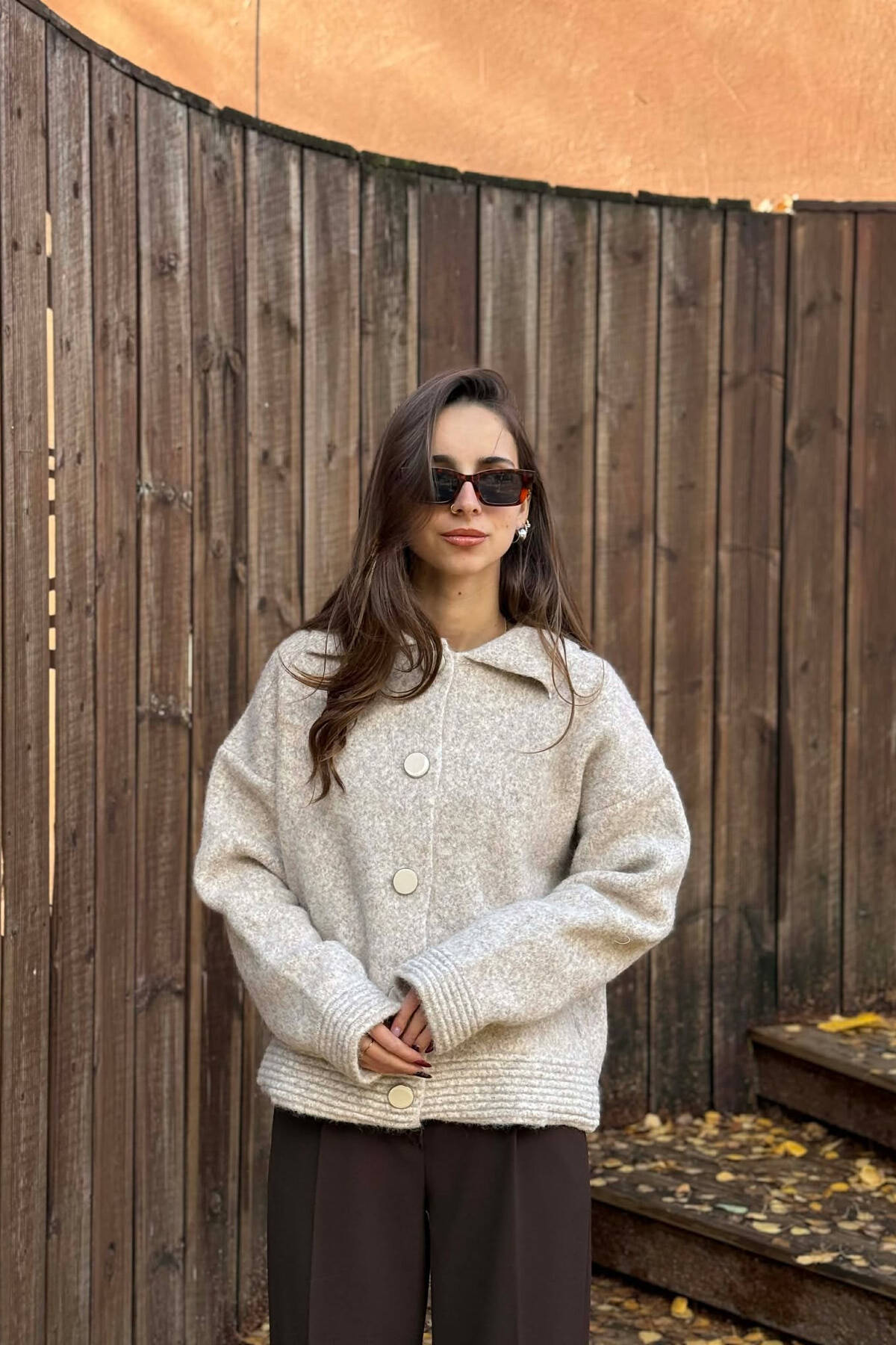 BUTTONS DETAIL ONE COLOR WOMEN CARDIGAN BEIGE/BEZHE