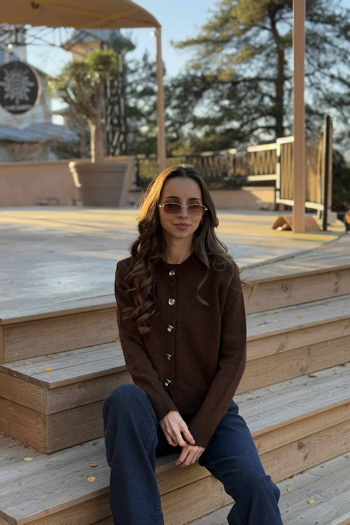 BUTTONS DETAIL ONE COLOR WOMEN CARDIGAN DARK BROWN/KAE