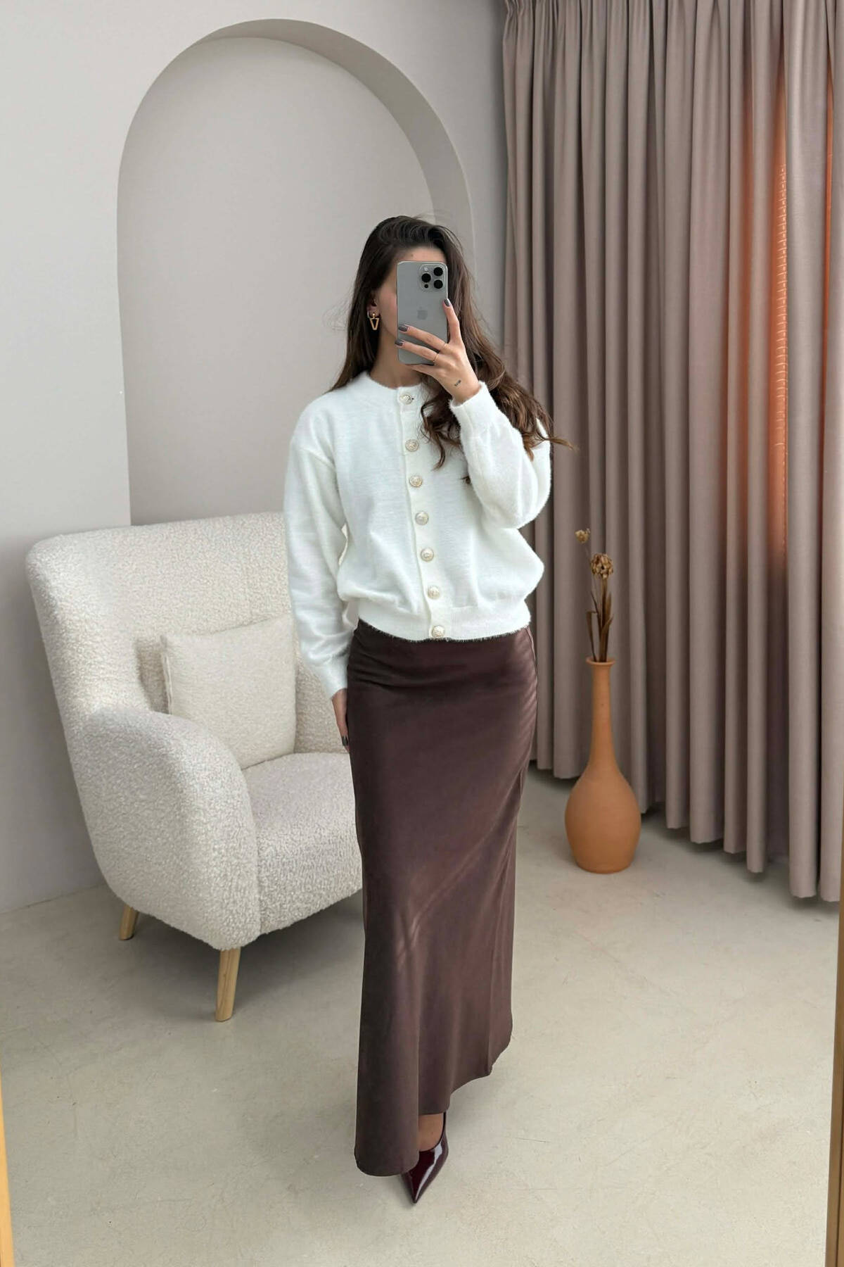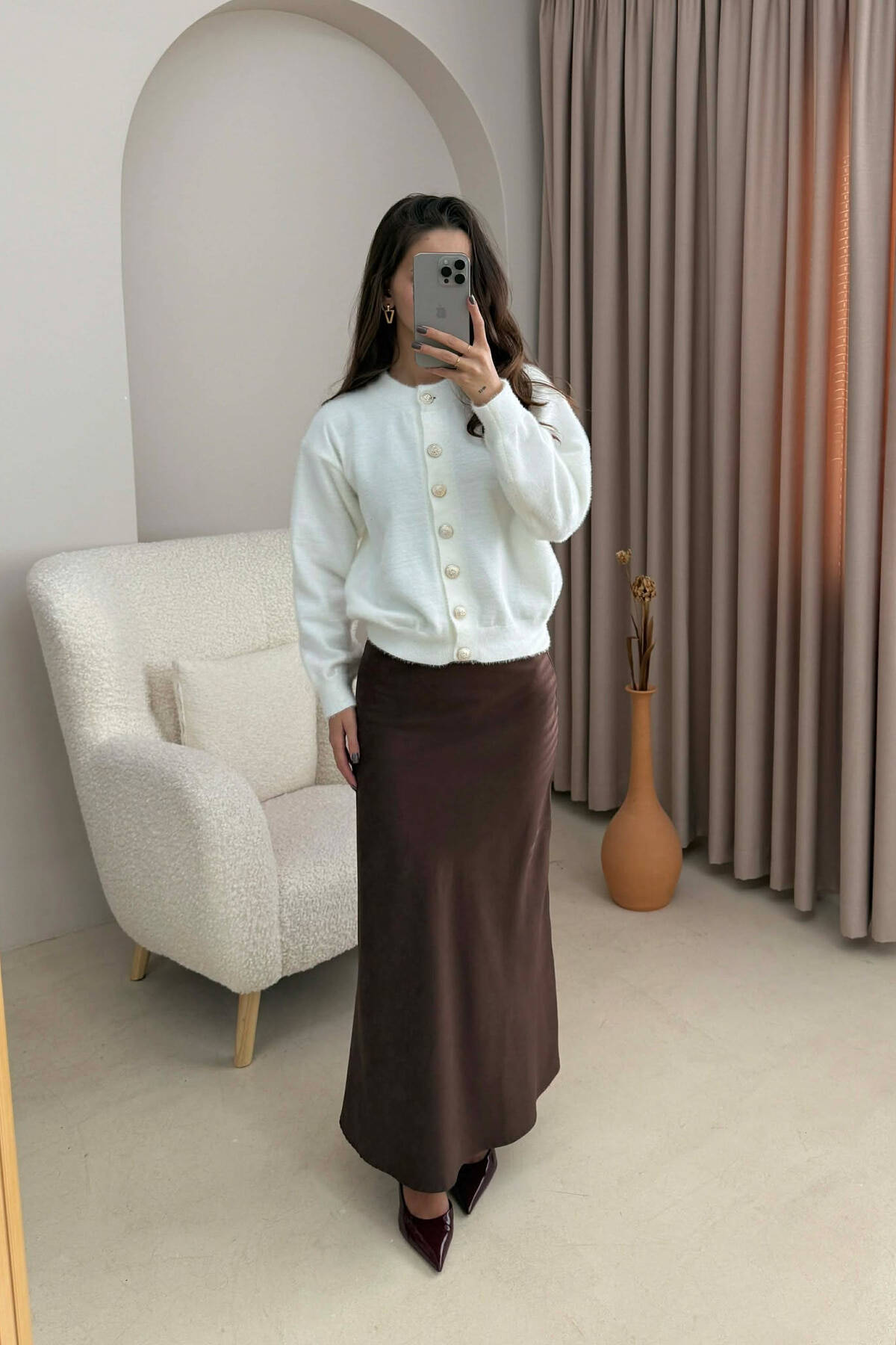 BUTTONS DETAIL ONE COLOR WOMEN CARDIGAN DARK BROWN/KAE