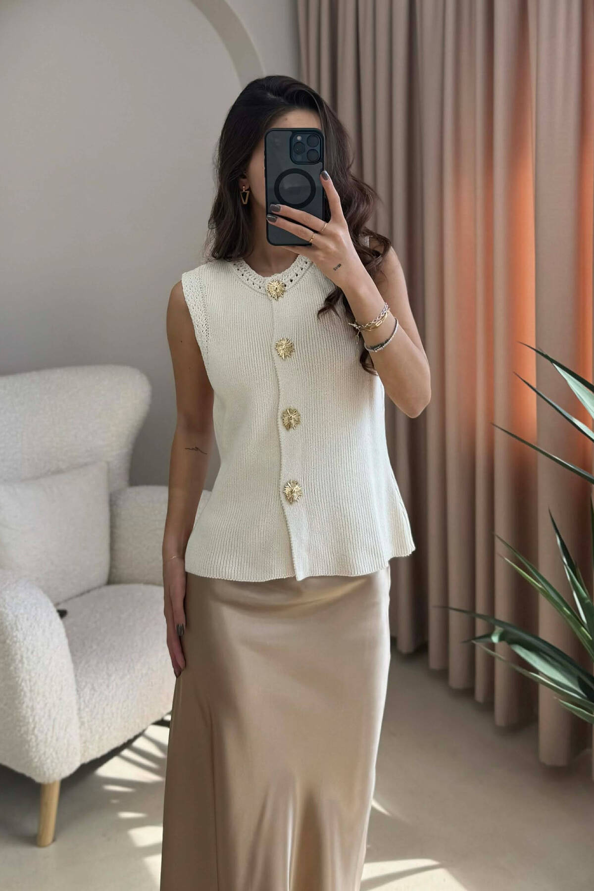 BUTTONS DETAIL ONE COLOR WOMEN VEST CREAM/KREM