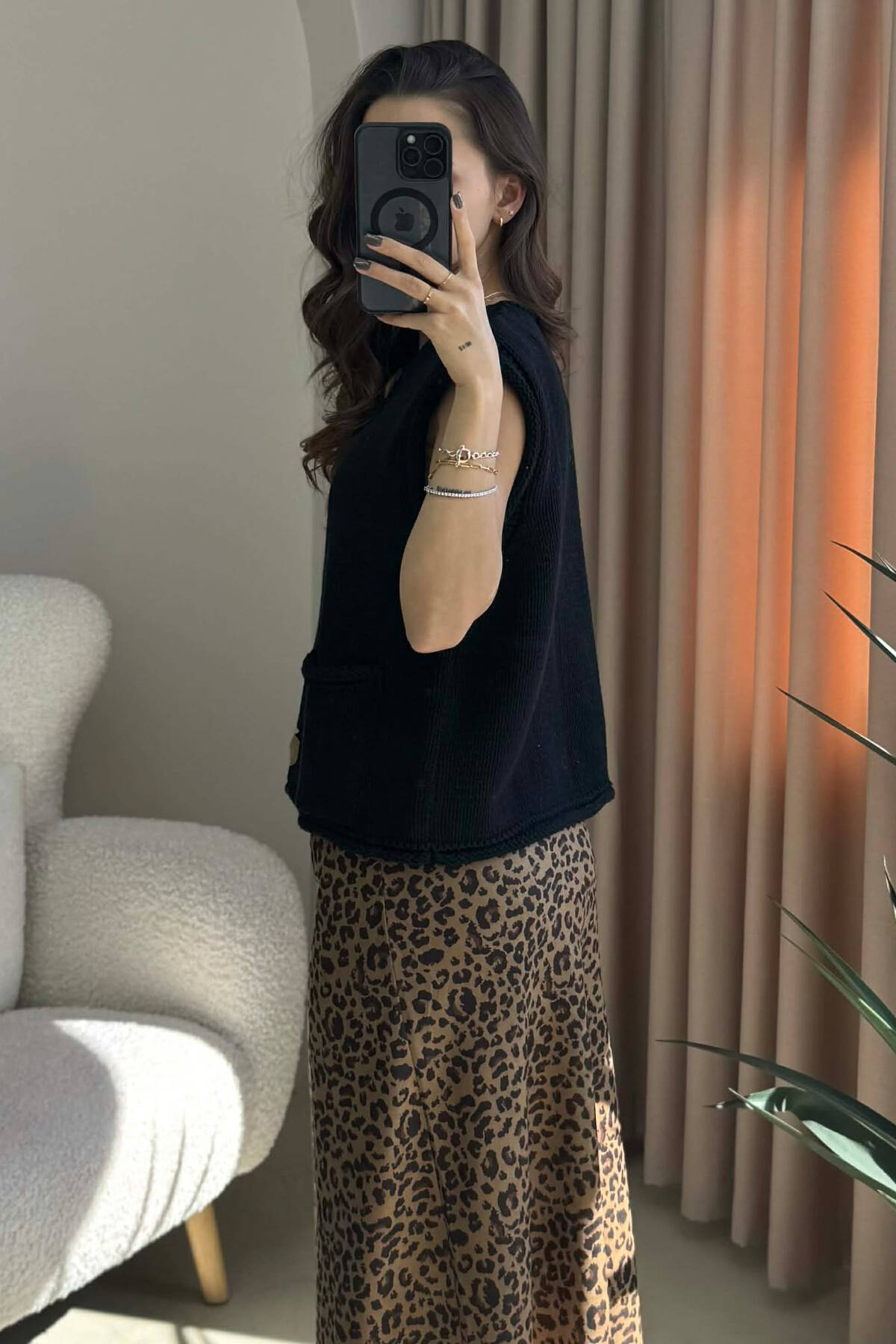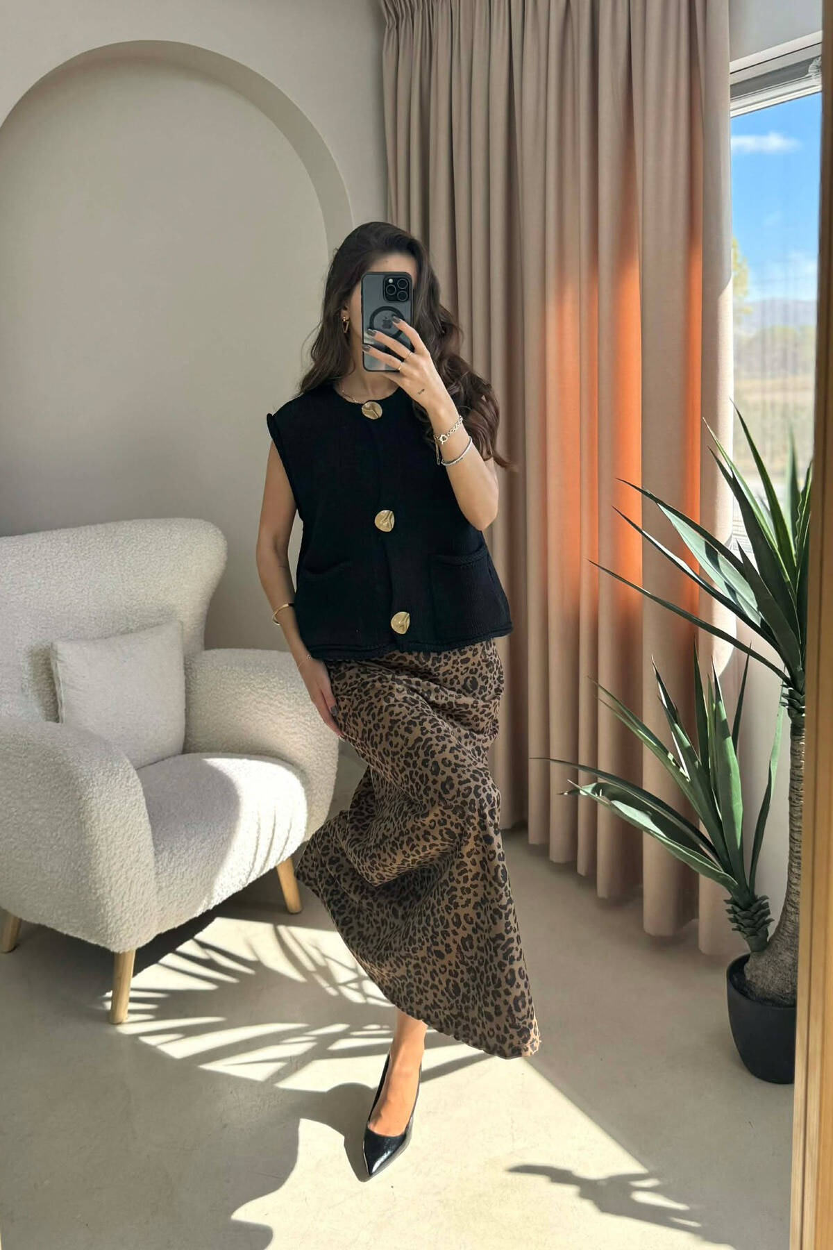 BUTTONS DETAIL SIMPLE KNIT WOMEN VEST BLACK/ E ZEZE