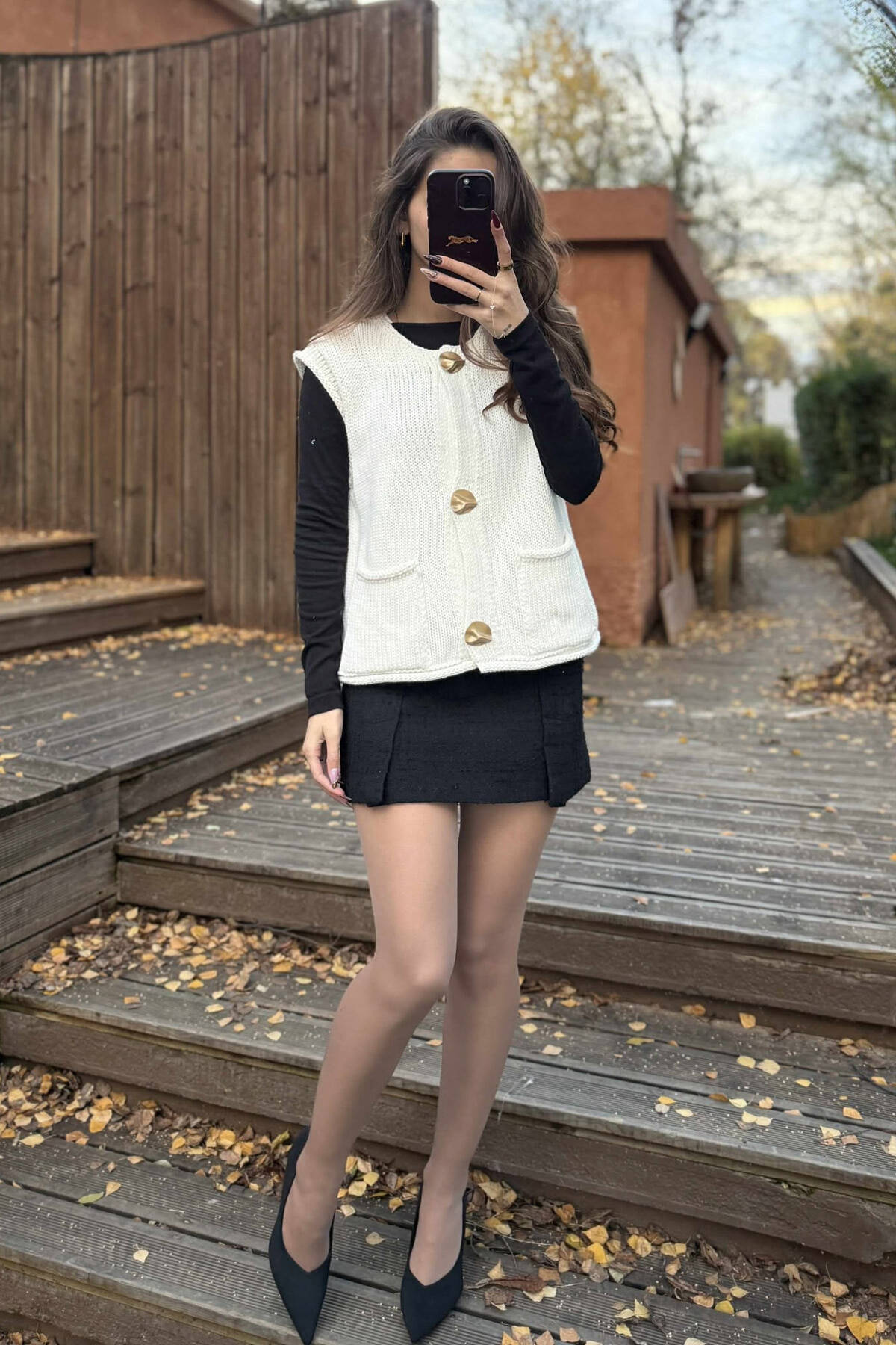 ONE COLOR BUTTONED WOMAN VEST BEIGE/BEZHE