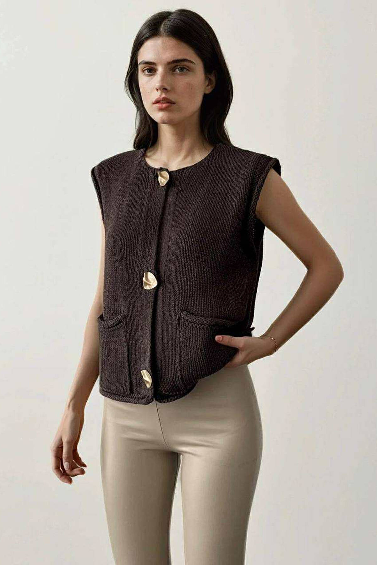 ONE COLOR BUTTONED WOMAN VEST BEIGE/BEZHE