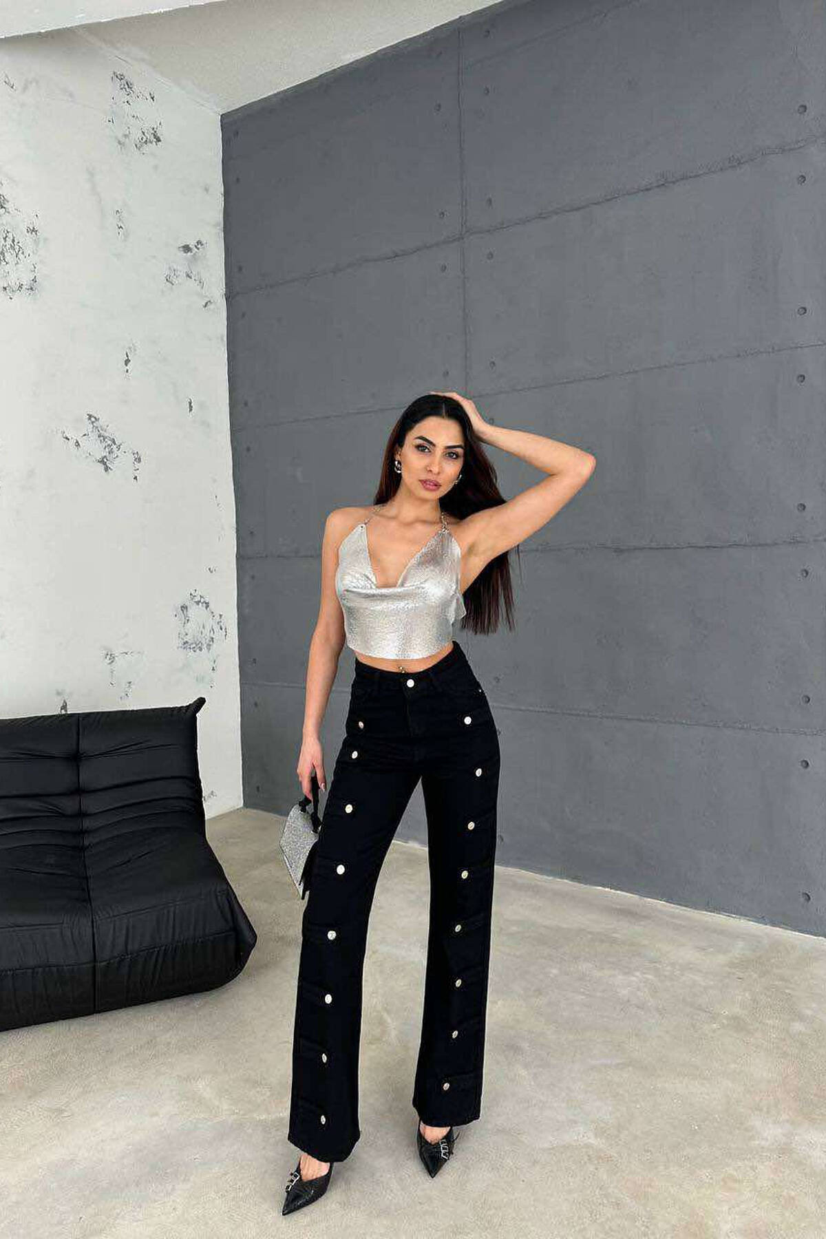 BUTTONS DETAILS ONE COLOR WOMEN JEANS BLACK/ E ZEZE