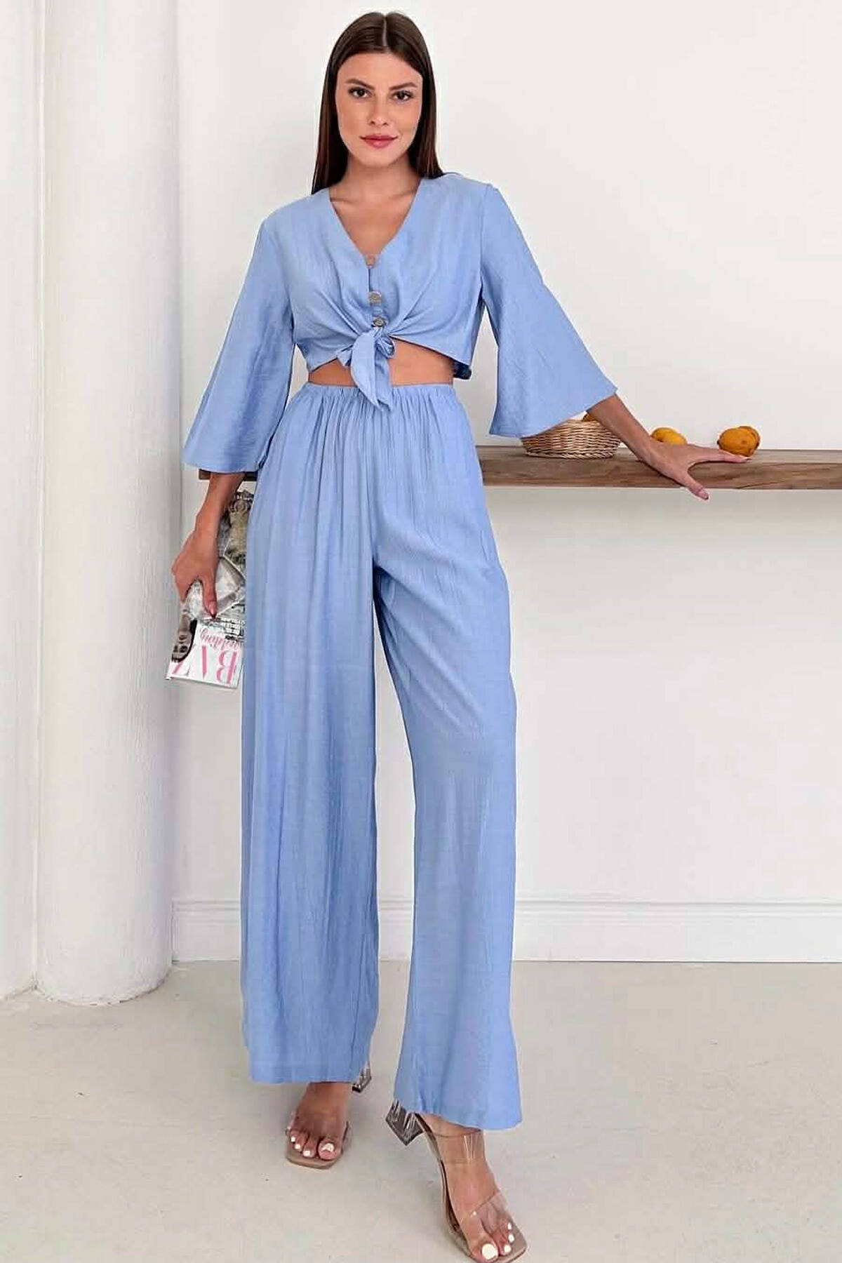 BUTTONS SHIRT + TROUSERS WOMAN SET BABY BLUE/BLU BY