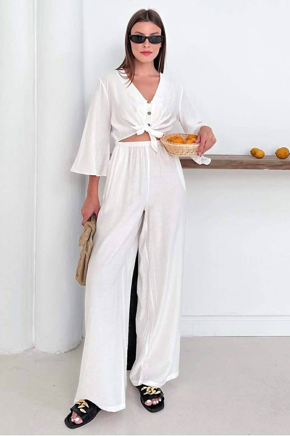 BUTTONS SHIRT + TROUSERS WOMAN SET WHITE-E BARDHE