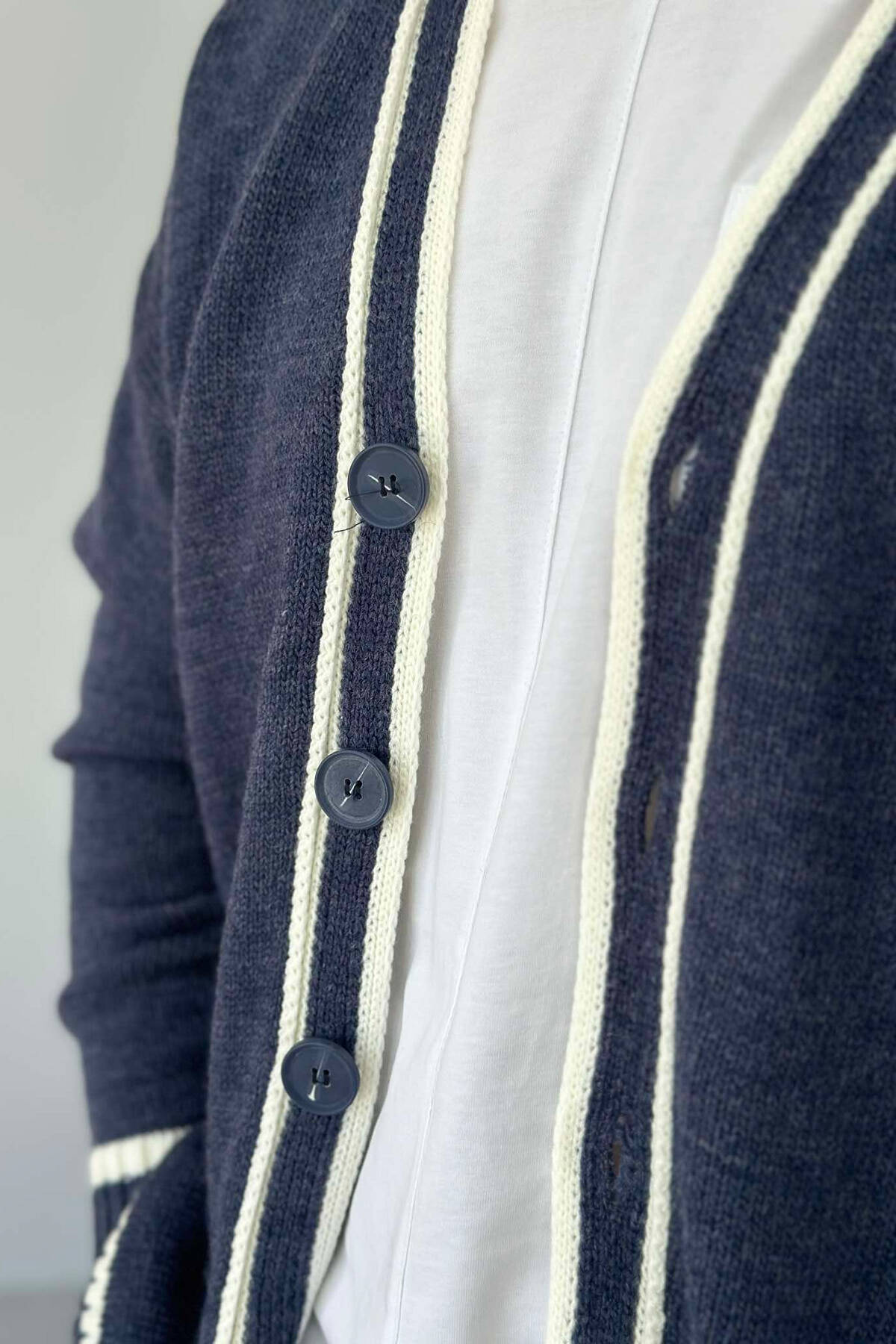 Blue Color Solid Color Button Up Sweater For Men