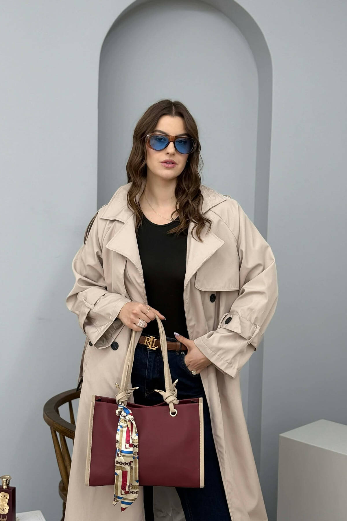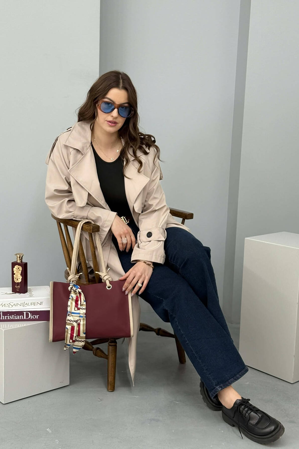 ÇANTE NJE NGJYRESHE ME DETAJIN E SHALLIT DHE ZINXHIR PER FEMRA NE NGJYRE BEZHE