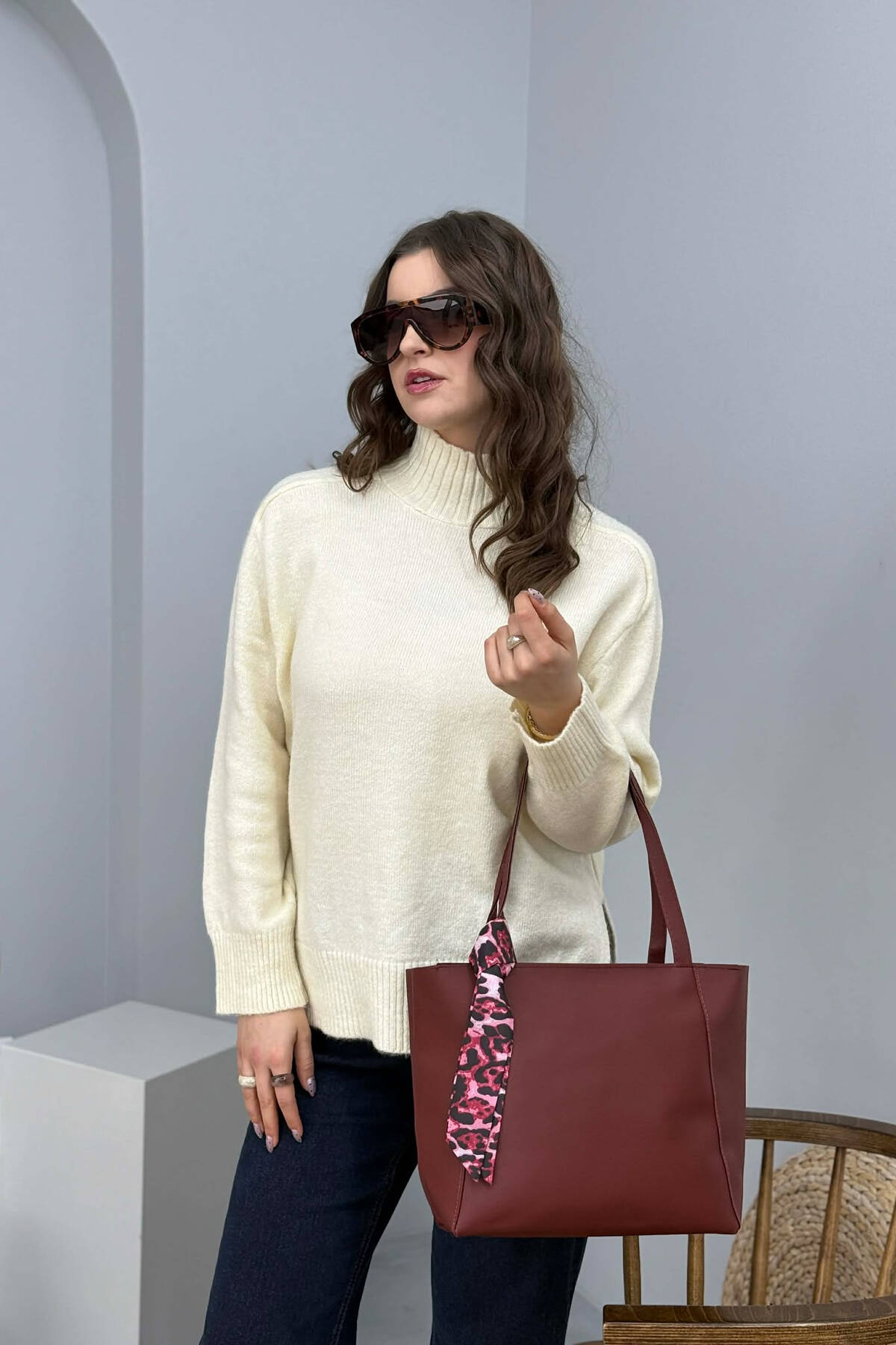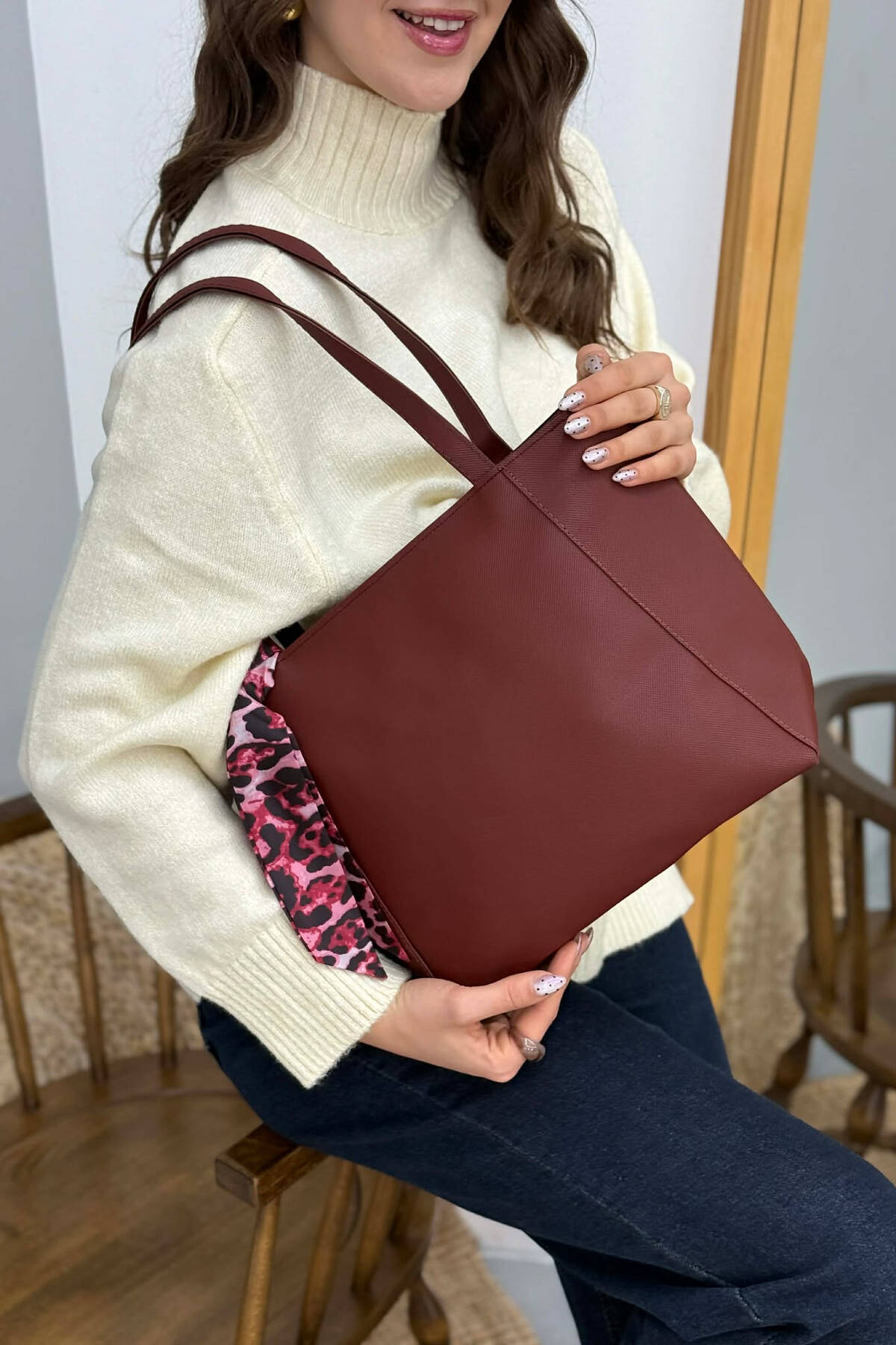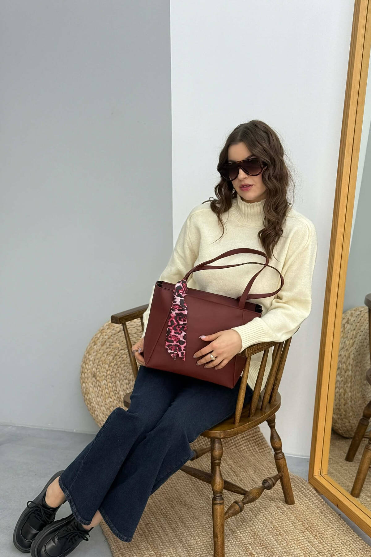 ÇANTE E THJESHTE NJE NGJYRESHE ME DETAJIN E SHALLIT PER FEMRA NE NGJYRE VISHNJE