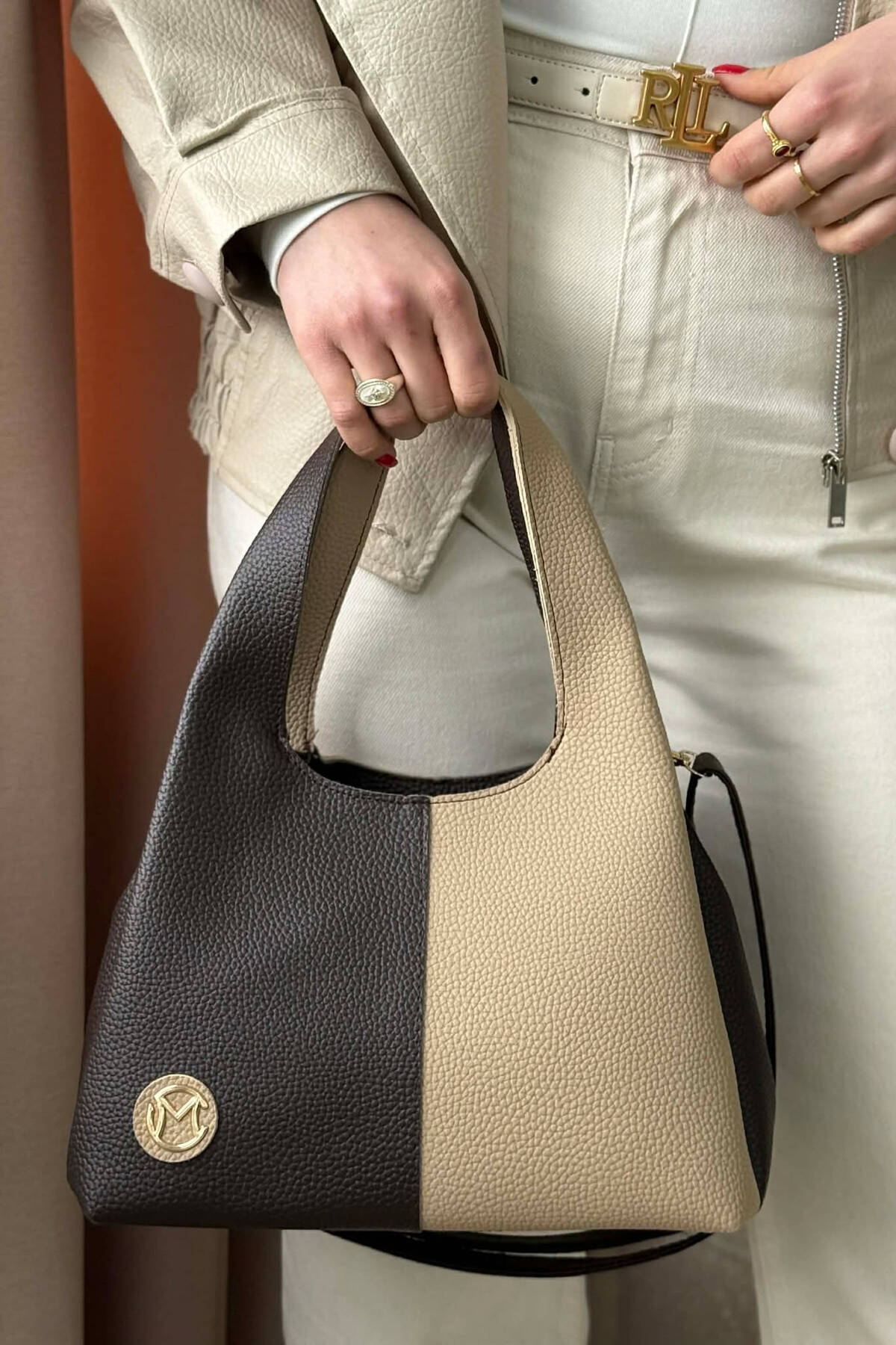 ÇANTE LEKURE DY NGJYRESHE PER FEMRA NE NGJYRE BEZHE ME KAFE TE ERRET