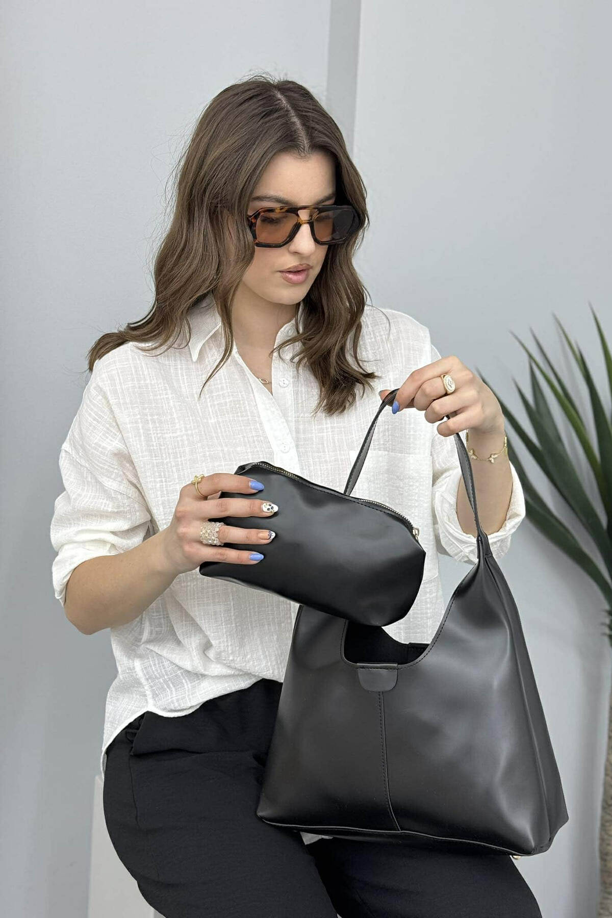 ÇANTË LËKURE E THJESHTË PËR FEMRA NË NGJYRËN E ZEZË