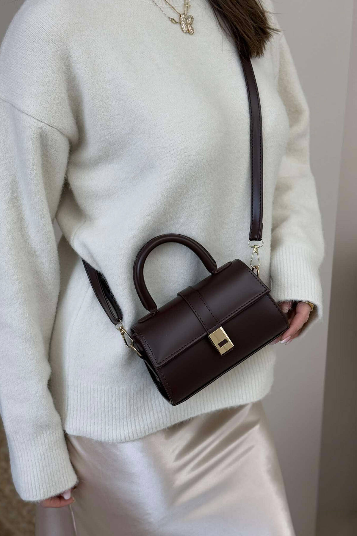 ÇANTË LËKURE E THJESHTË PËR FEMRA NË NGJYRËN KAFE E ERRËT