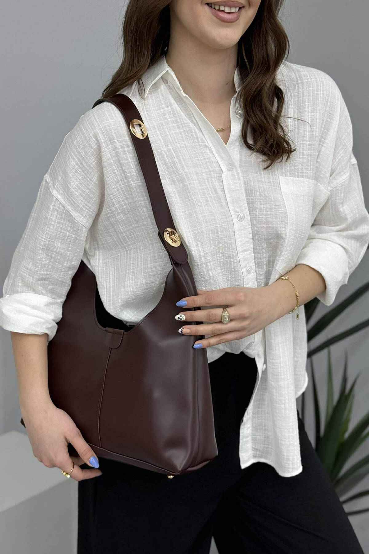 ÇANTË LËKURE E THJESHTË PËR FEMRA NË NGJYRËN KAFE E ERRËT