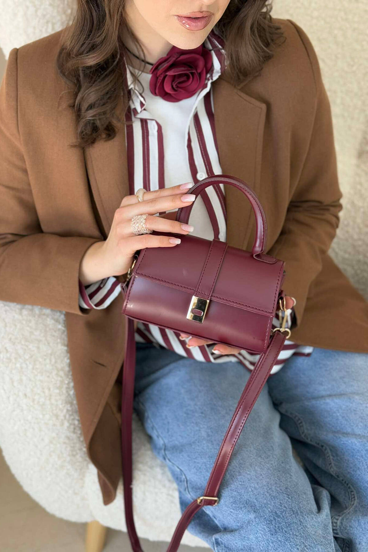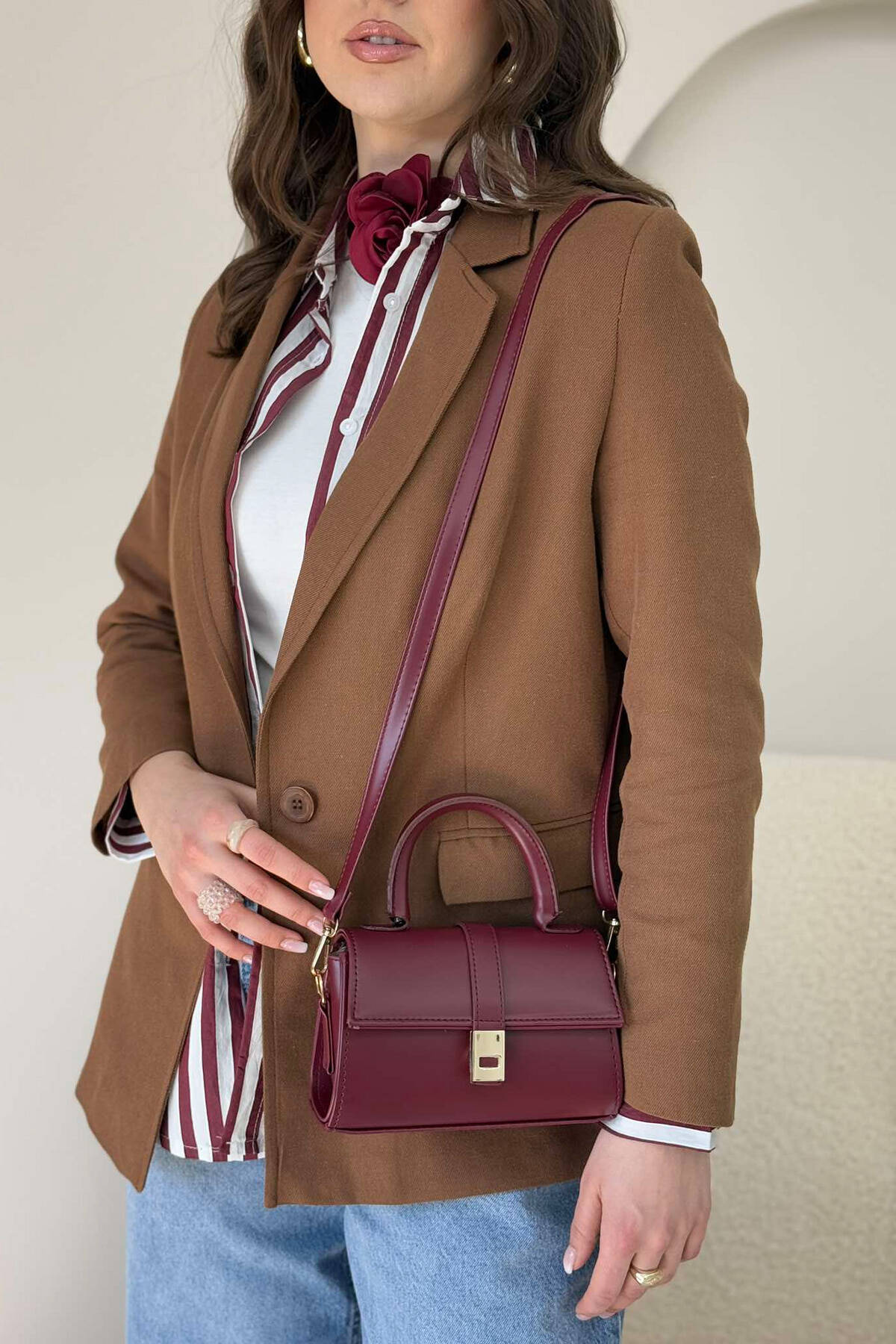 ÇANTË LËKURE E THJESHTË PËR FEMRA NË NGJYRËN VISHNJË