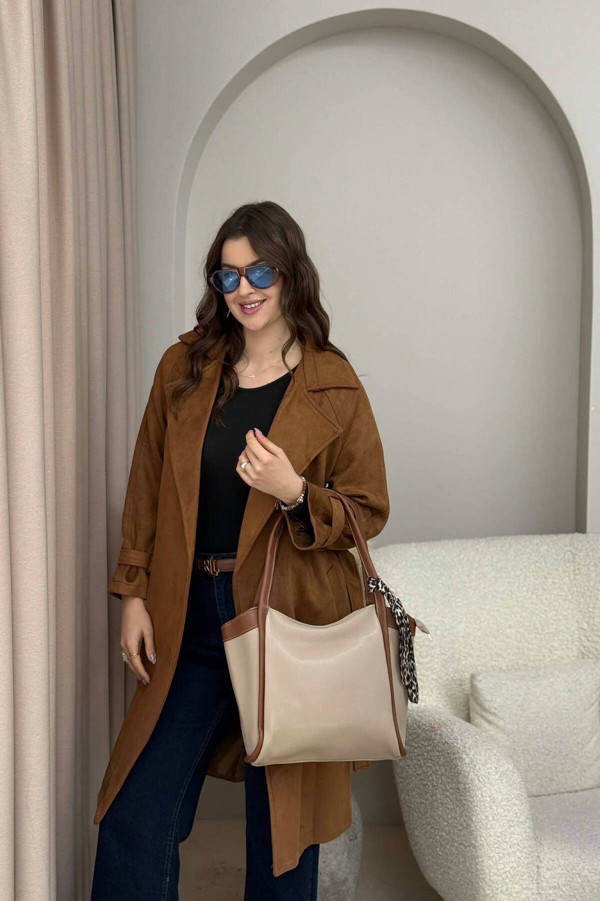 ÇANTE NJE NGJYRESHE PER FEMRA NE NGJYRE KAFE TE ERRET