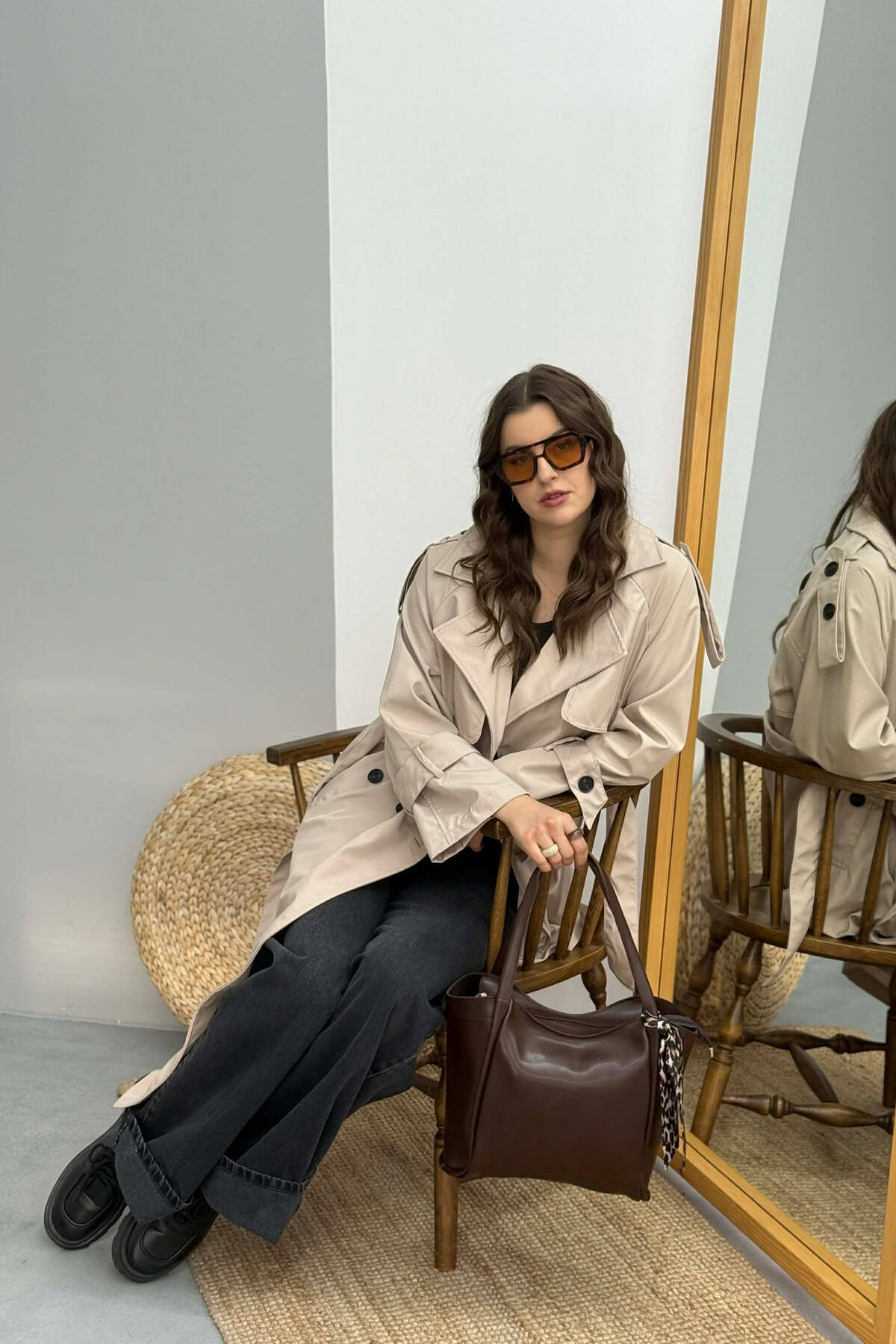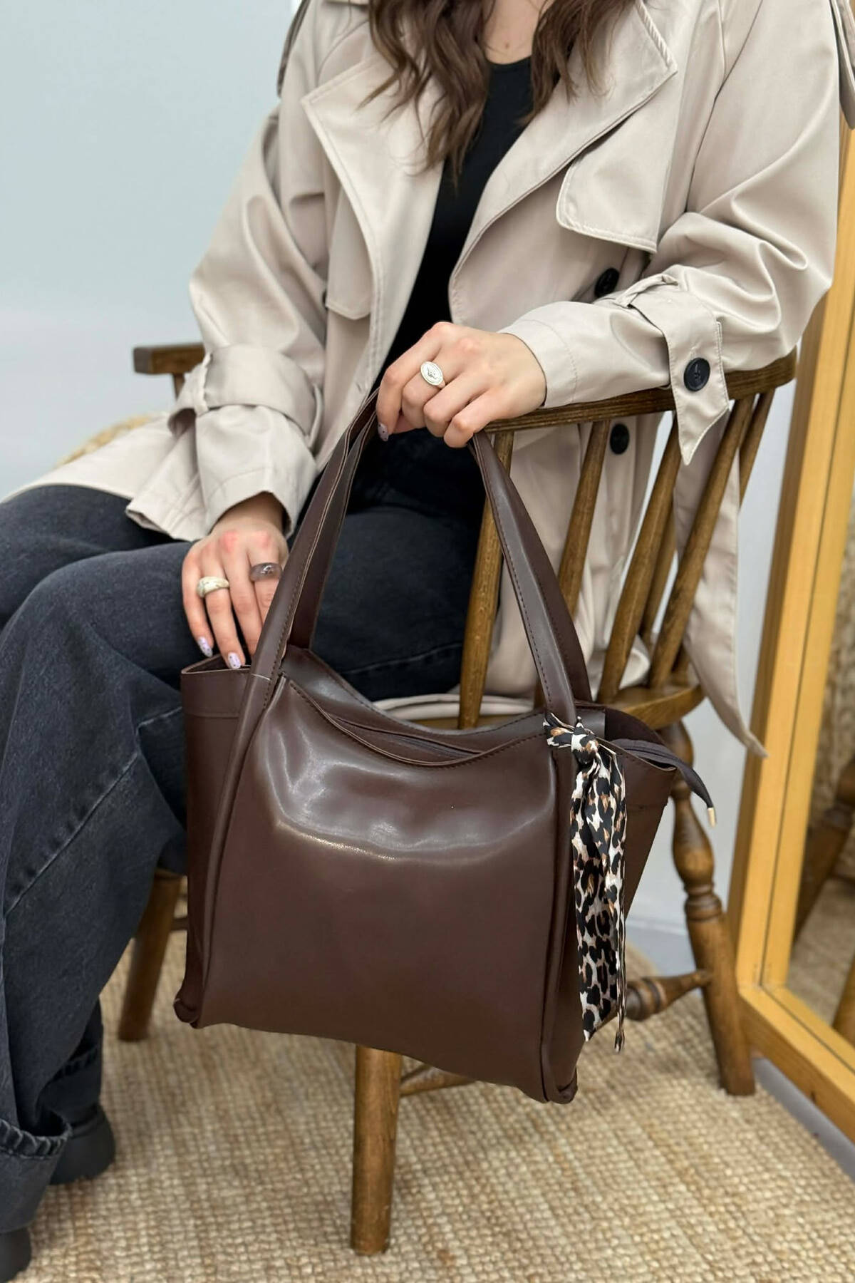 ÇANTE LEKURE ME DETAJIN E SHALLIT PER FEMRA NE NGJYRE KAFE