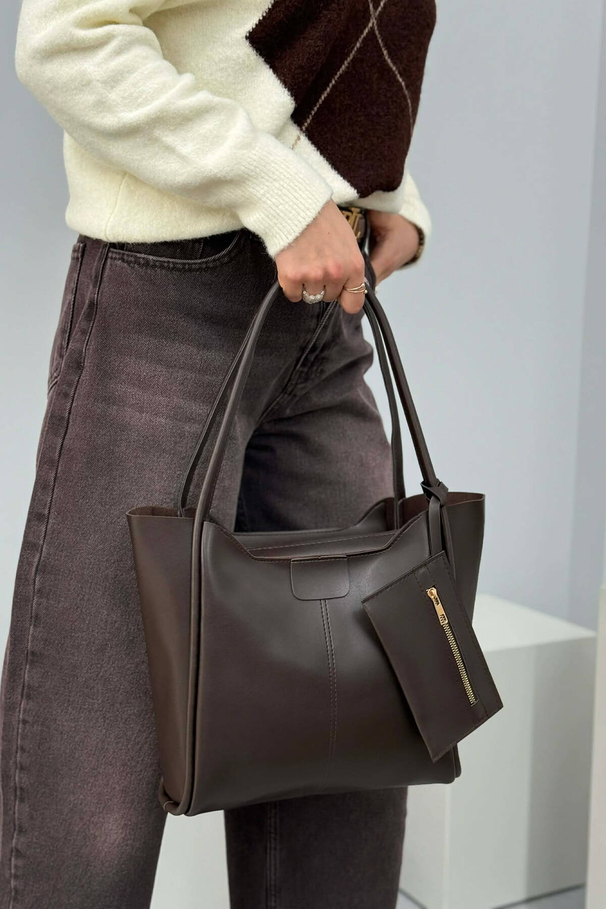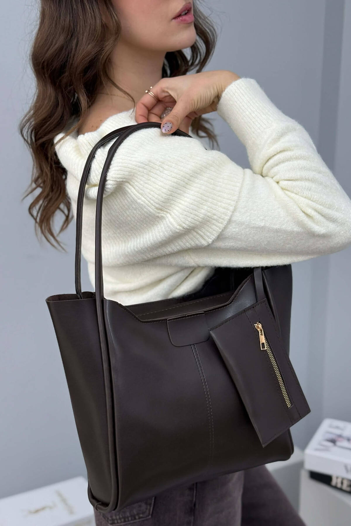 ÇANTE NJE NGJYRESHE PER FEMRA NE NGJYRE KAFE