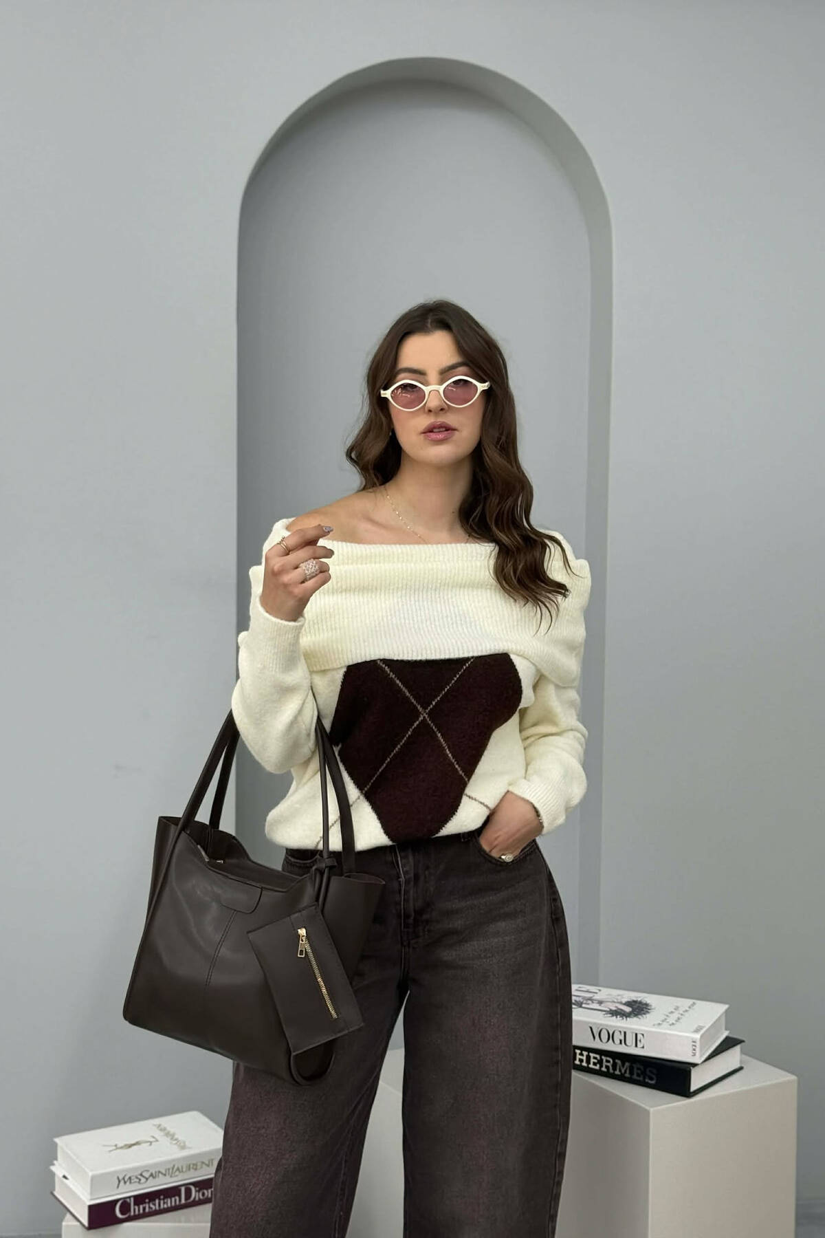 ÇANTE LEKURE ME ZINXHIR PER FEMRA NE NGJYRE KAFE TE ERRET