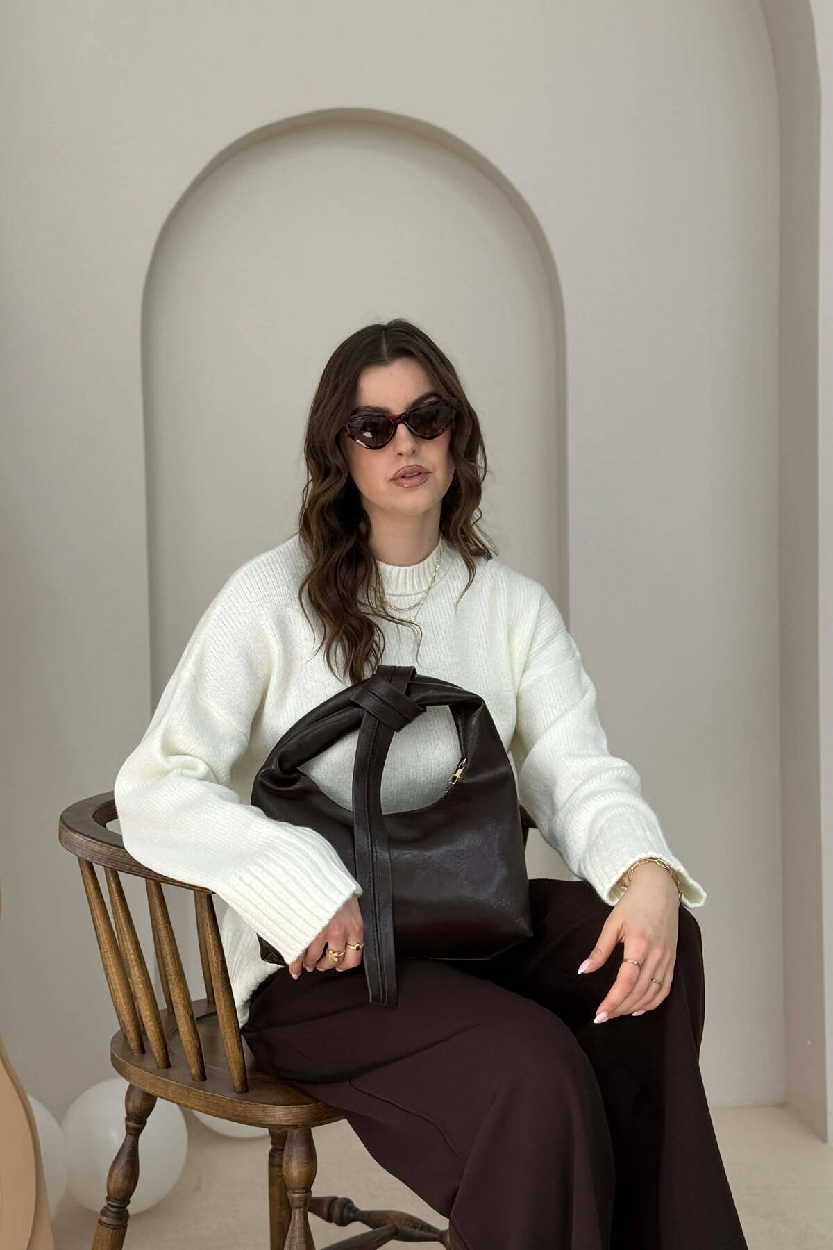 ÇANTE NJE NGHJYRESHE ME DETAJIN E SHALLIT PER FEMRA NE NGJYRE KAFE