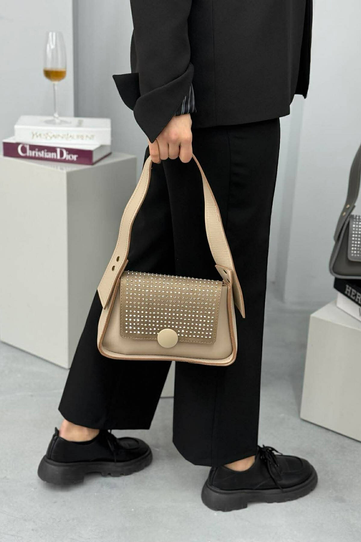 ÇANTE NJE NGJYRESHE ME SHKELQIM PER FEMRA NE NGJYRE BEZHE