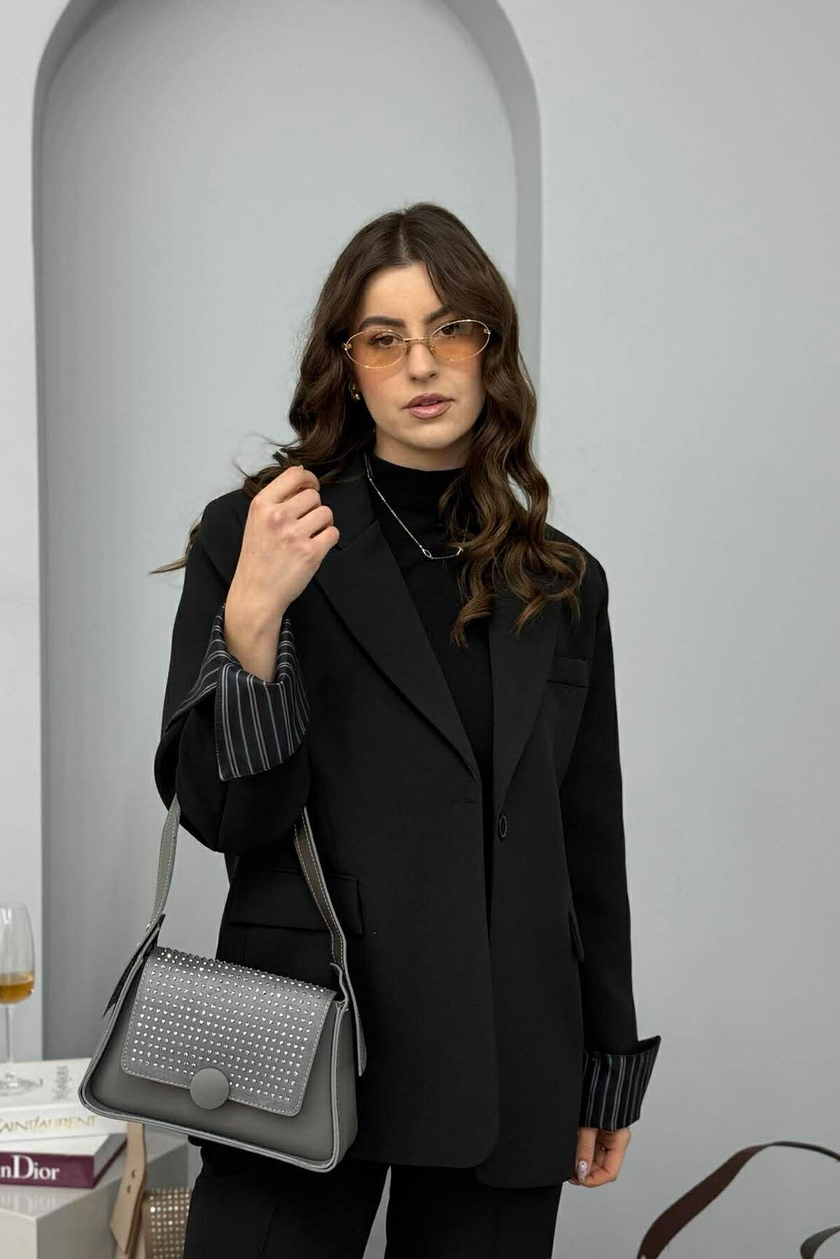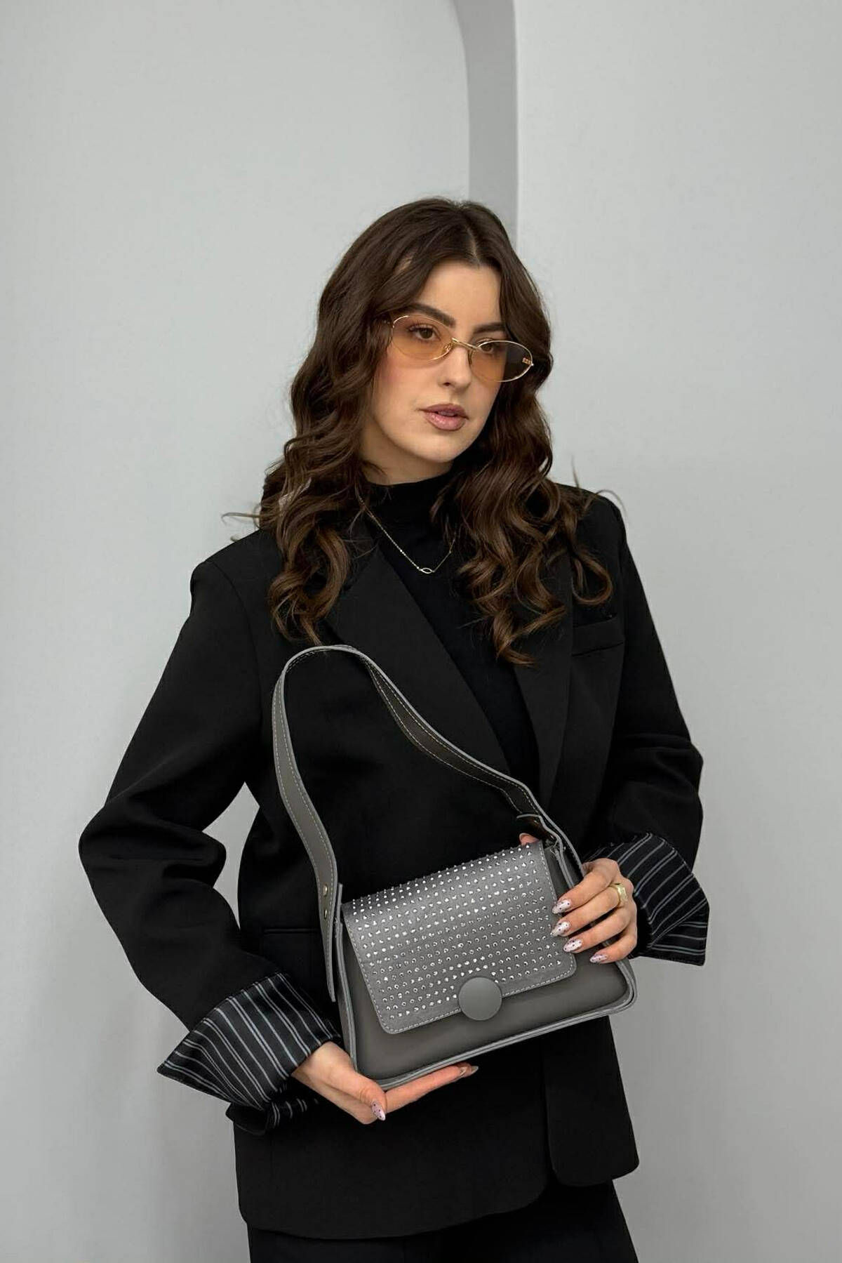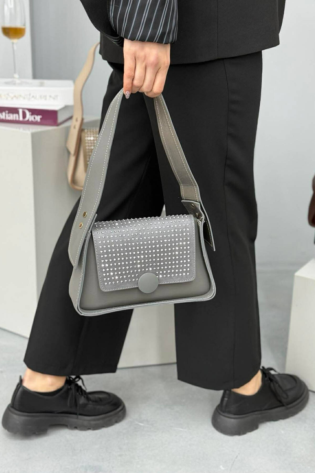ÇANTE NJE NGJYRESHE ME SHKELQIM PER FEMRA NE NGJYRE GRI TE ERRET
