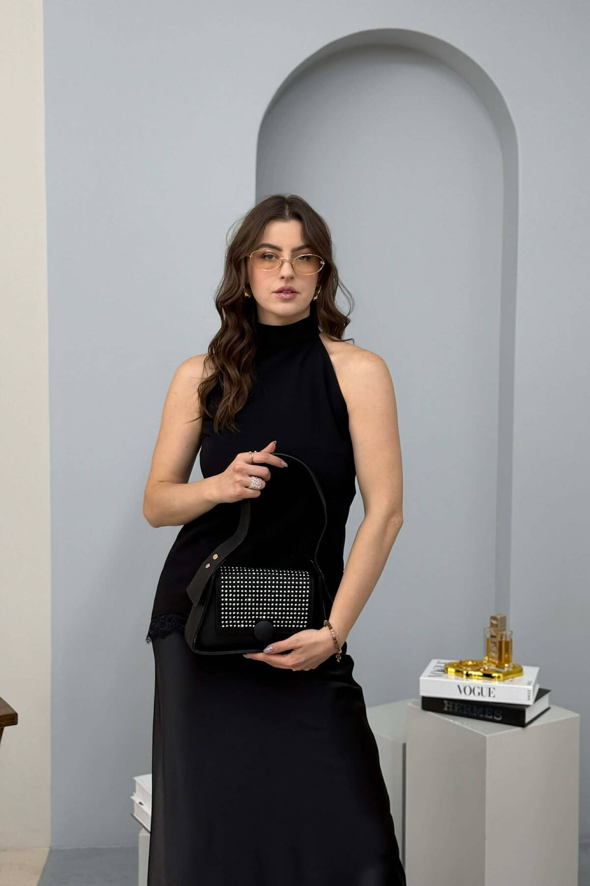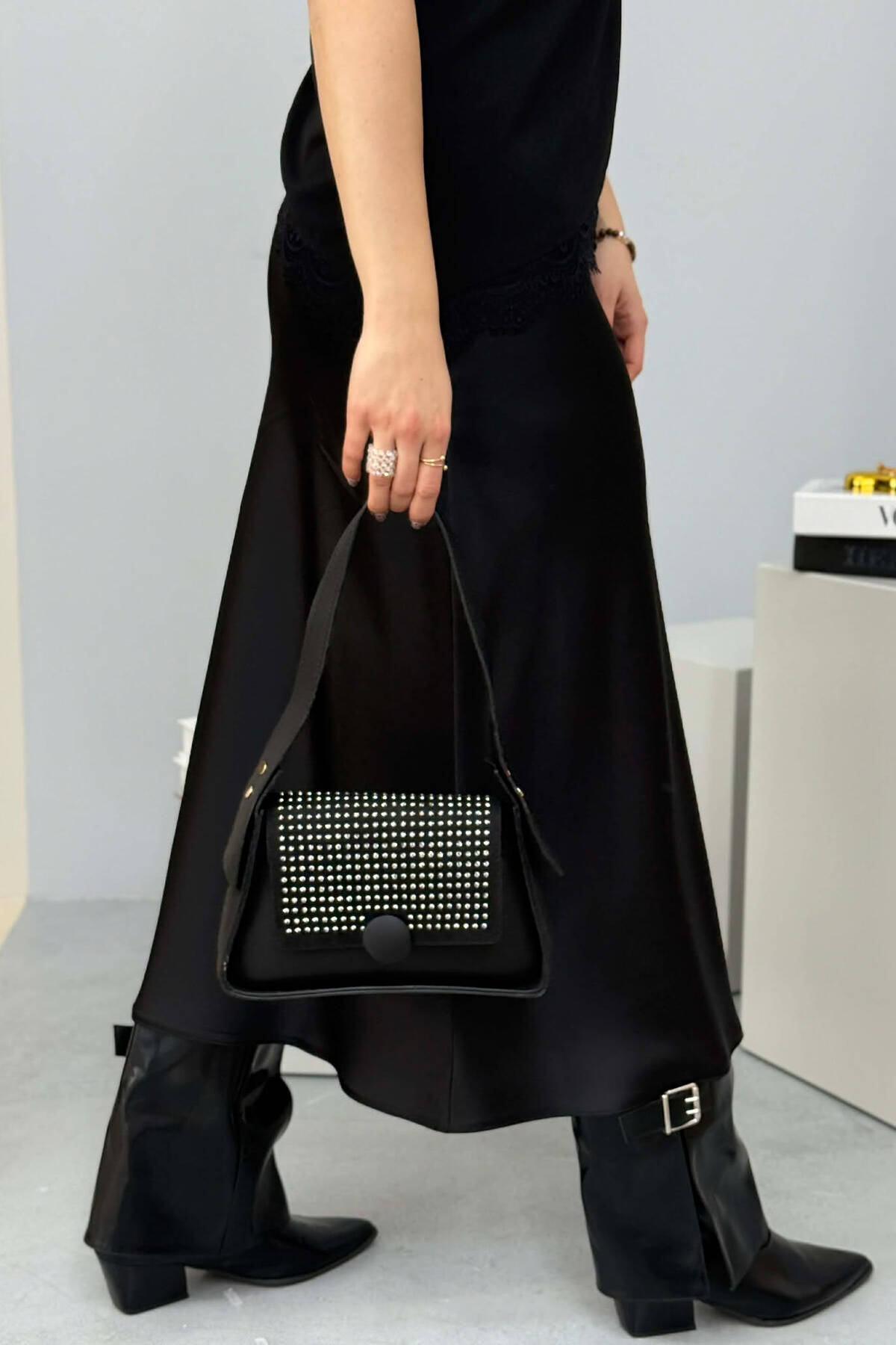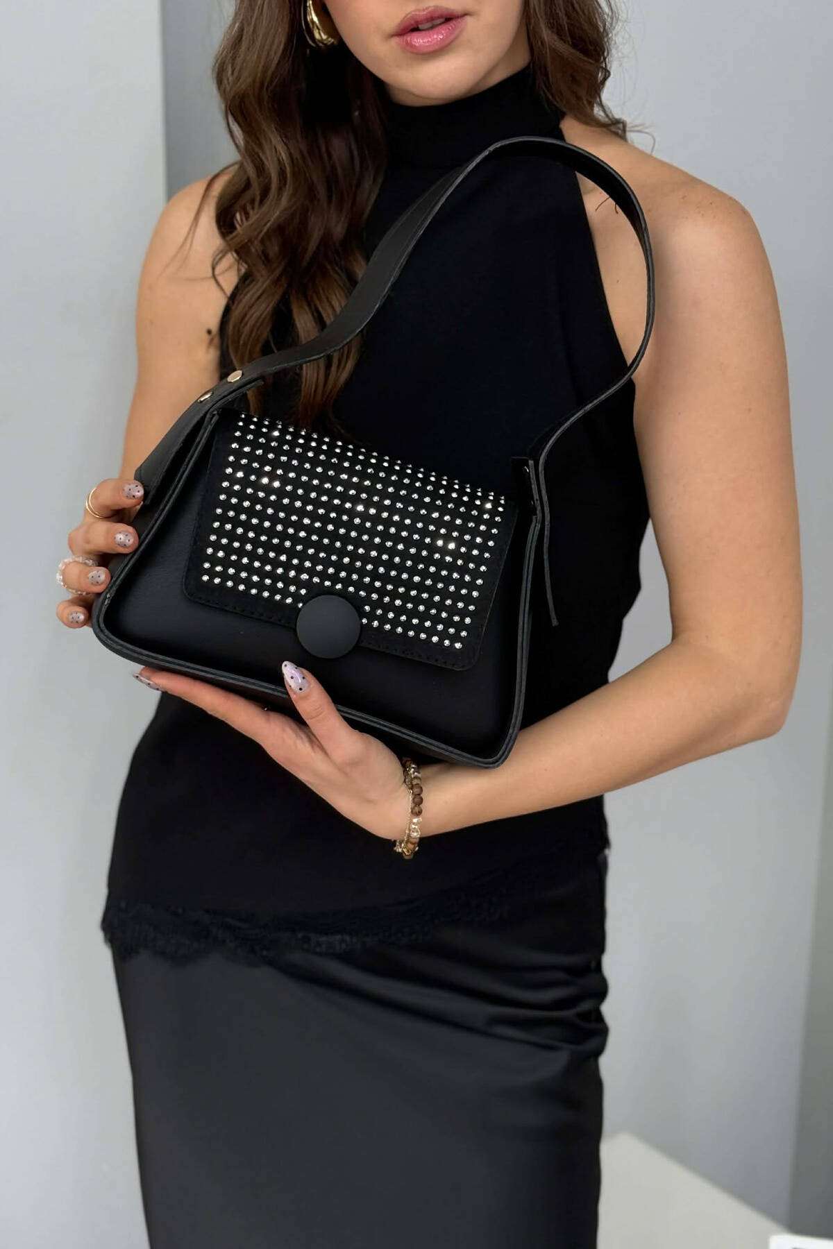 ÇANTE NJE NGJYRESHE ME SHKELQIM PER FEMRA NE NGJYRE TE ZEZE