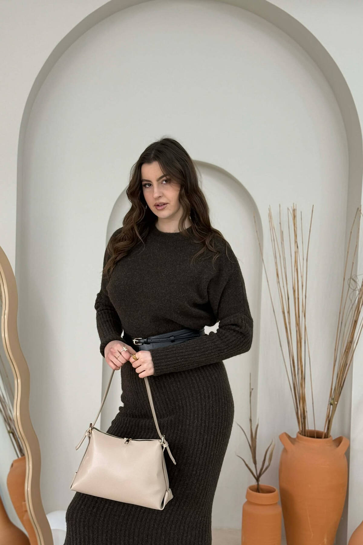 ÇANTE NJE NGJYRESHE PER FEMRA NE NGJYRE KAFE TE ERRET
