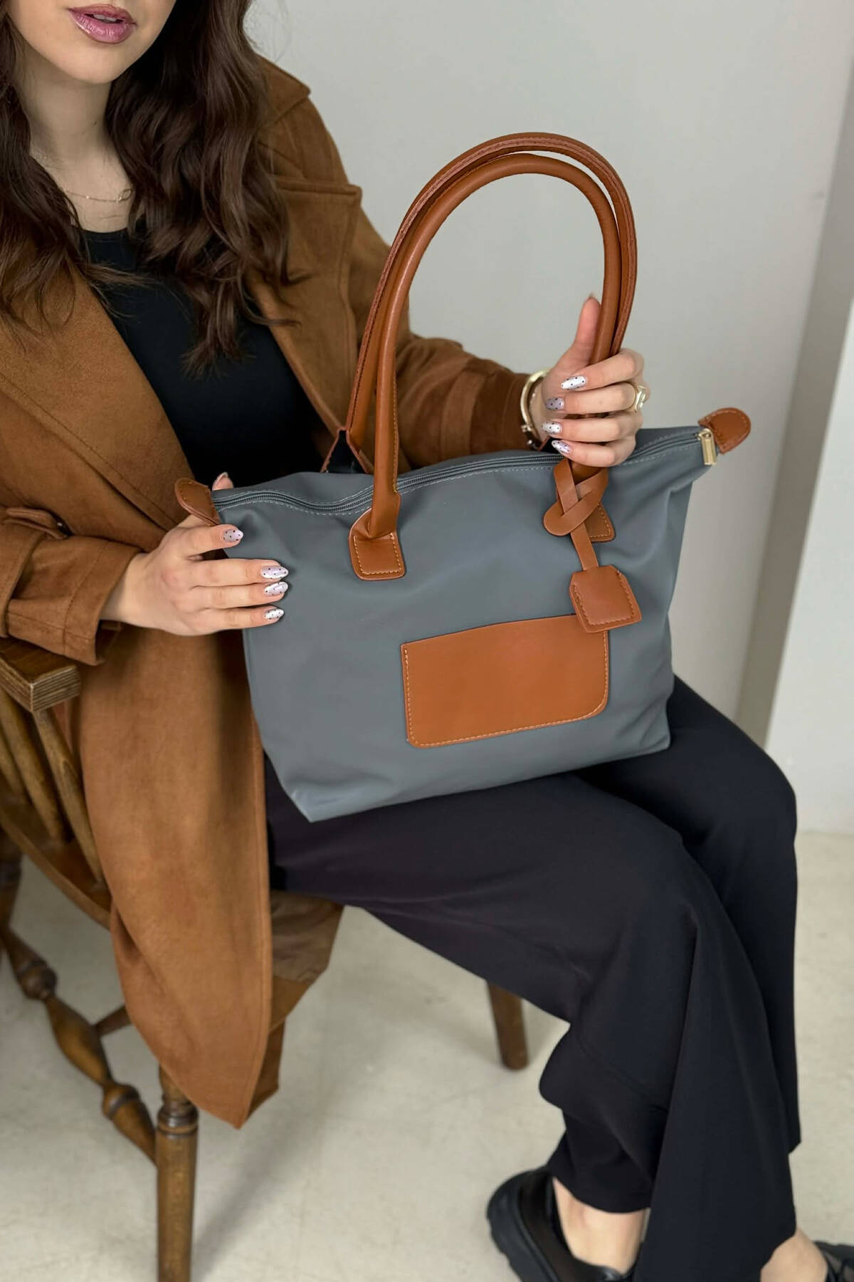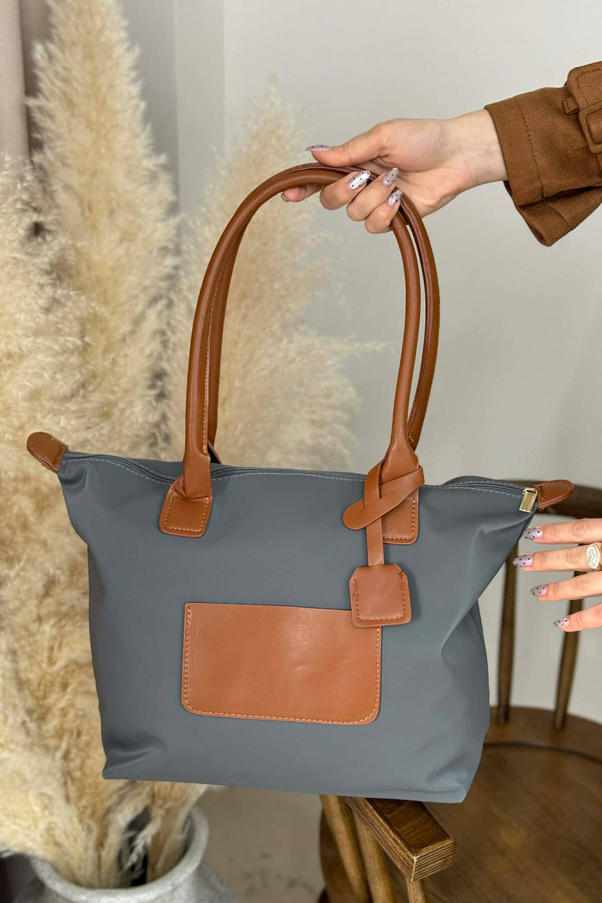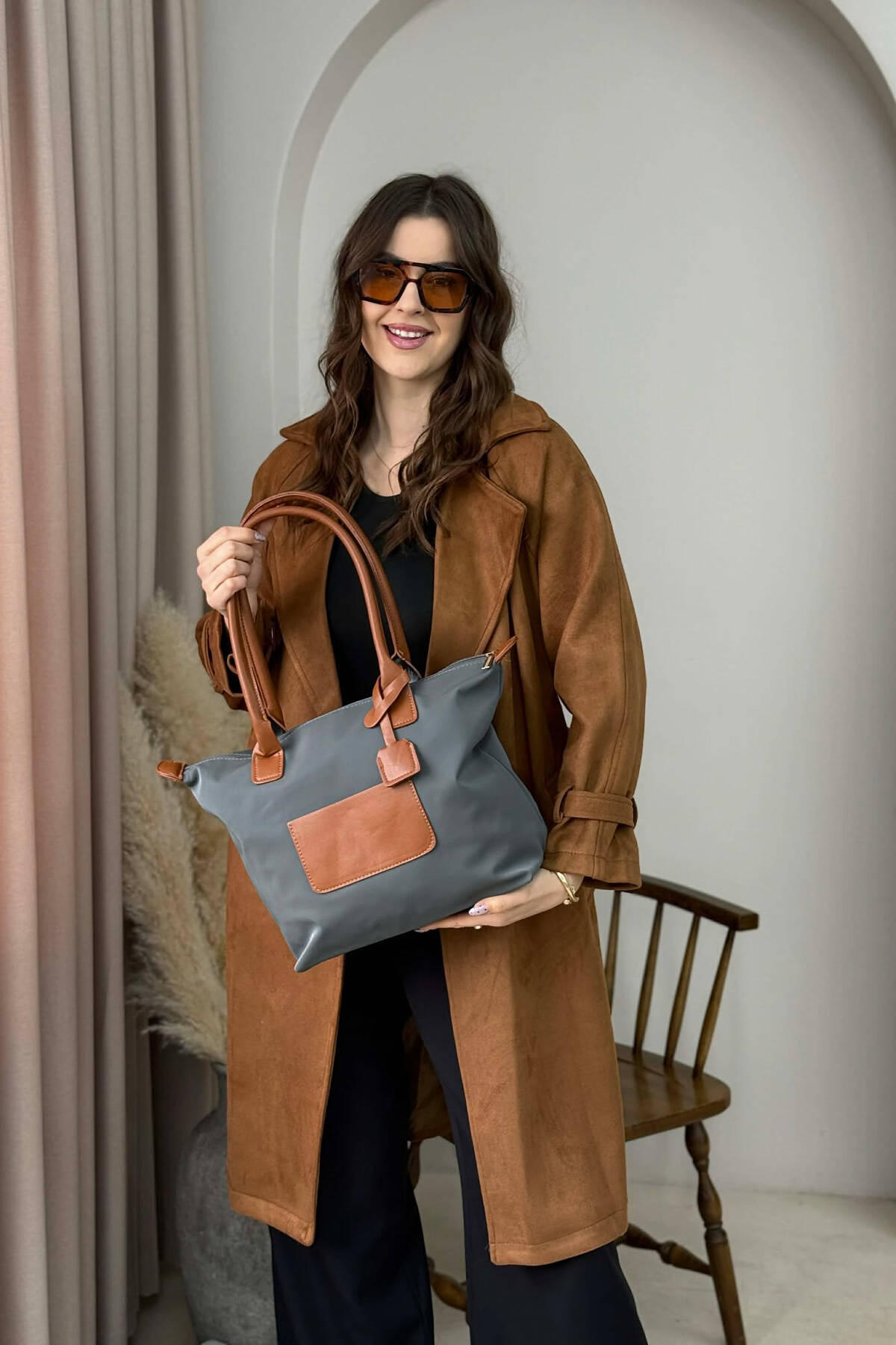 ÇANTE NJE NGJYRESHE ME ZINXHIR PER FEMRA NE NGJYRE GRI ME KAFE