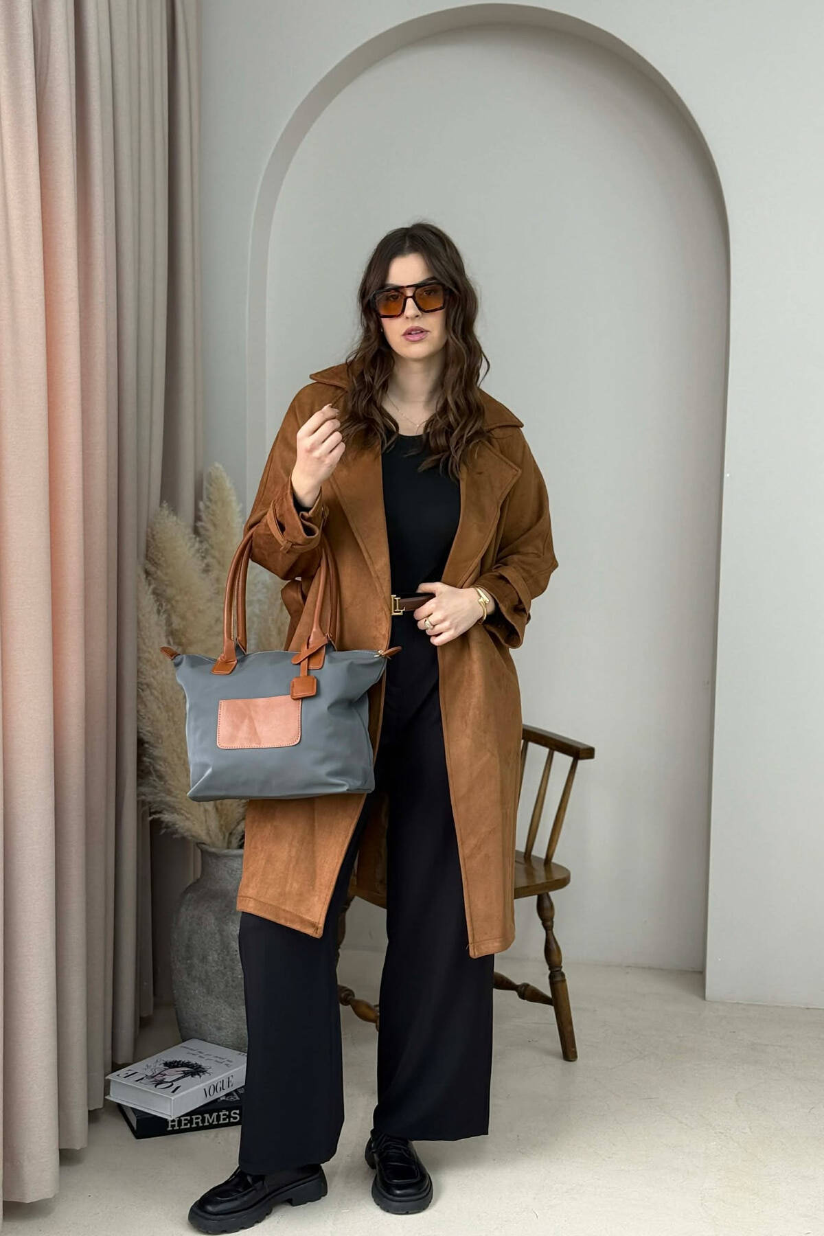 ÇANTE E THJESHTE NJE NGJYRESHE PER FEMRA NE NGJYRE KAFE