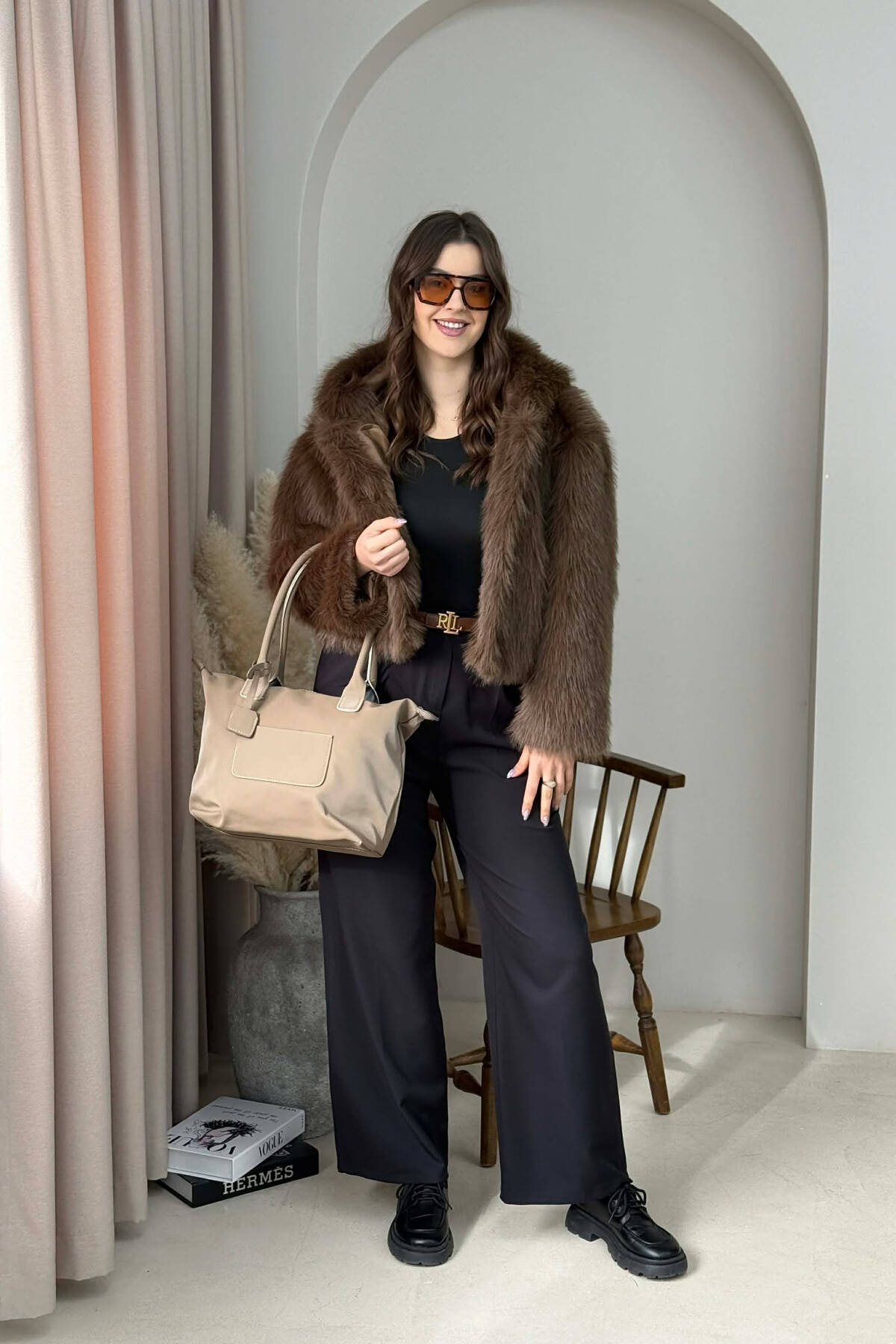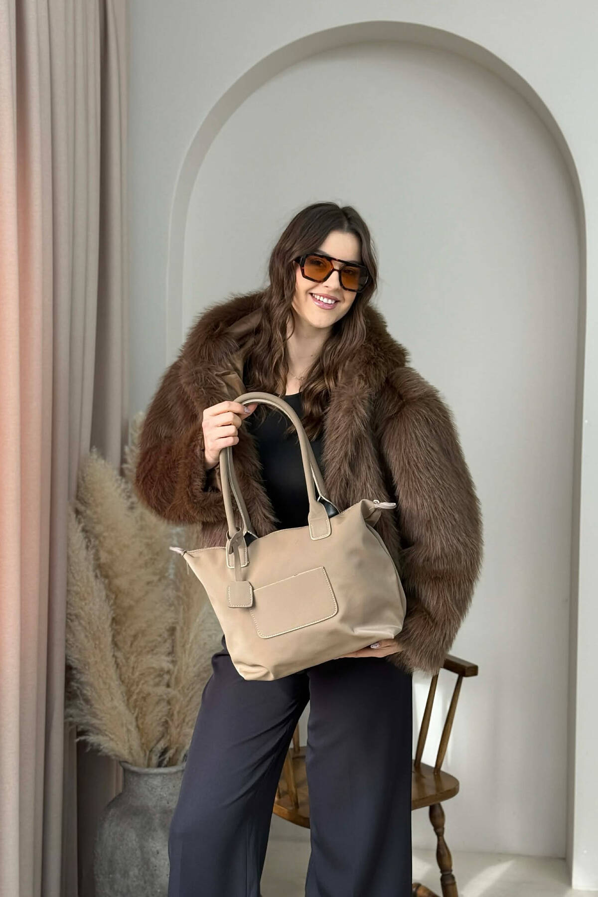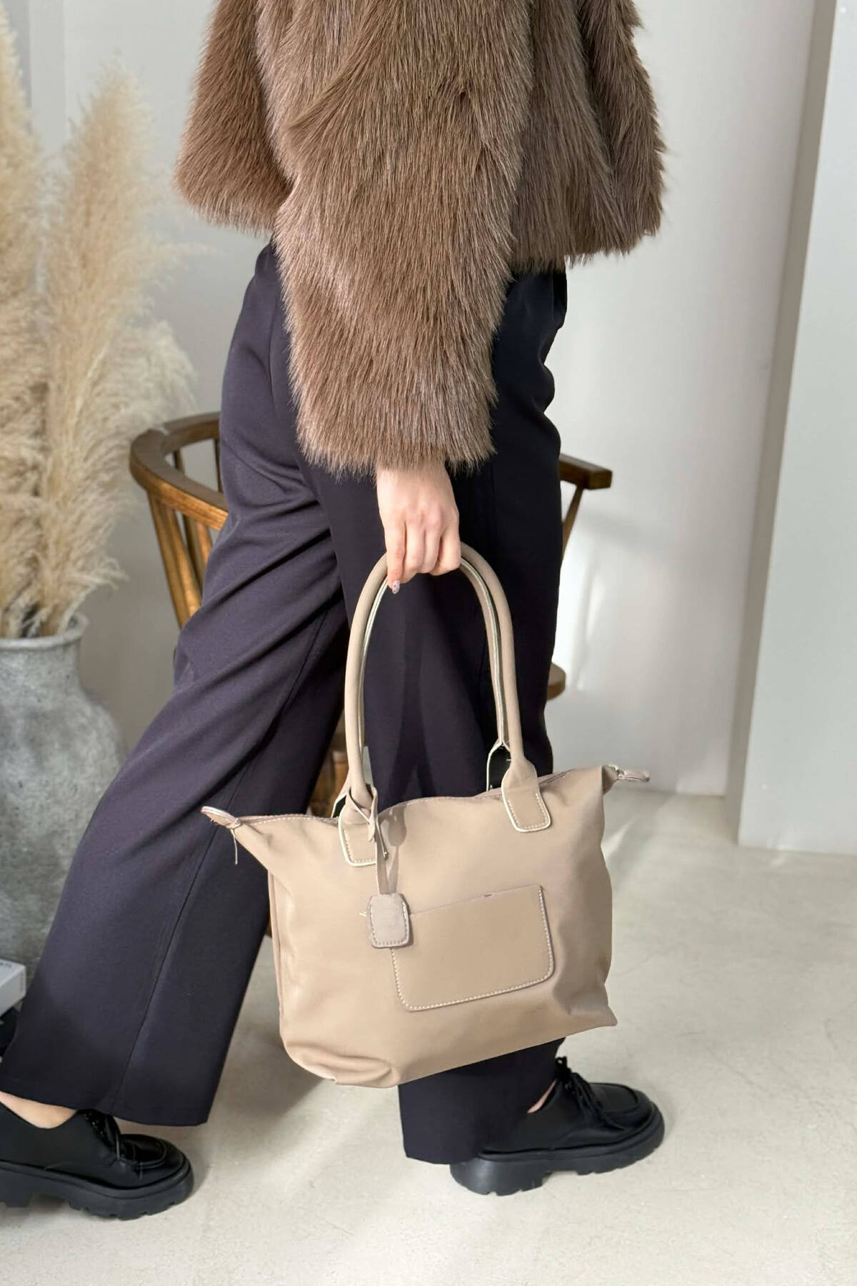 ÇANTE E THJESHTE NJE NGJYRESHE PER FEMRA NE NGJYRE KAFE