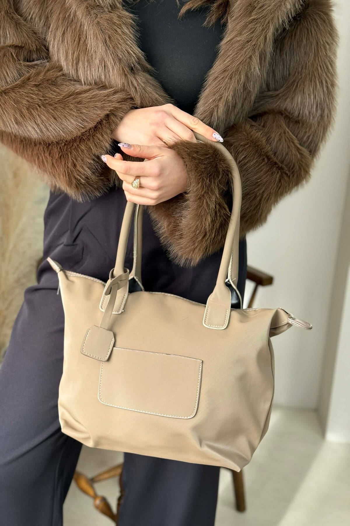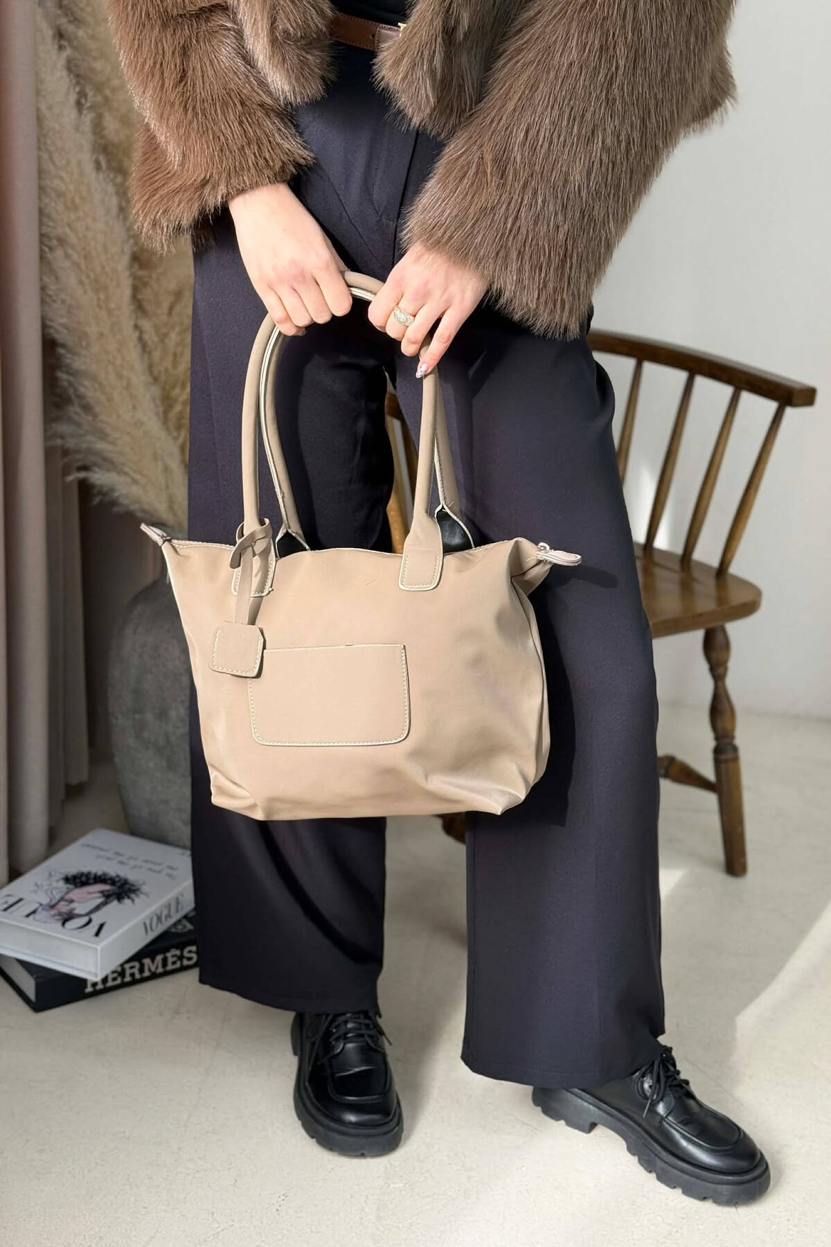 ÇANTE E THJESHTE NJE NGJYRESHE PER FEMRA NE NGJYRE BEZHE