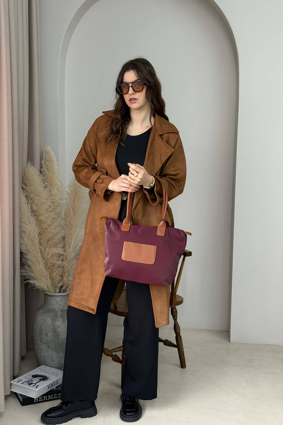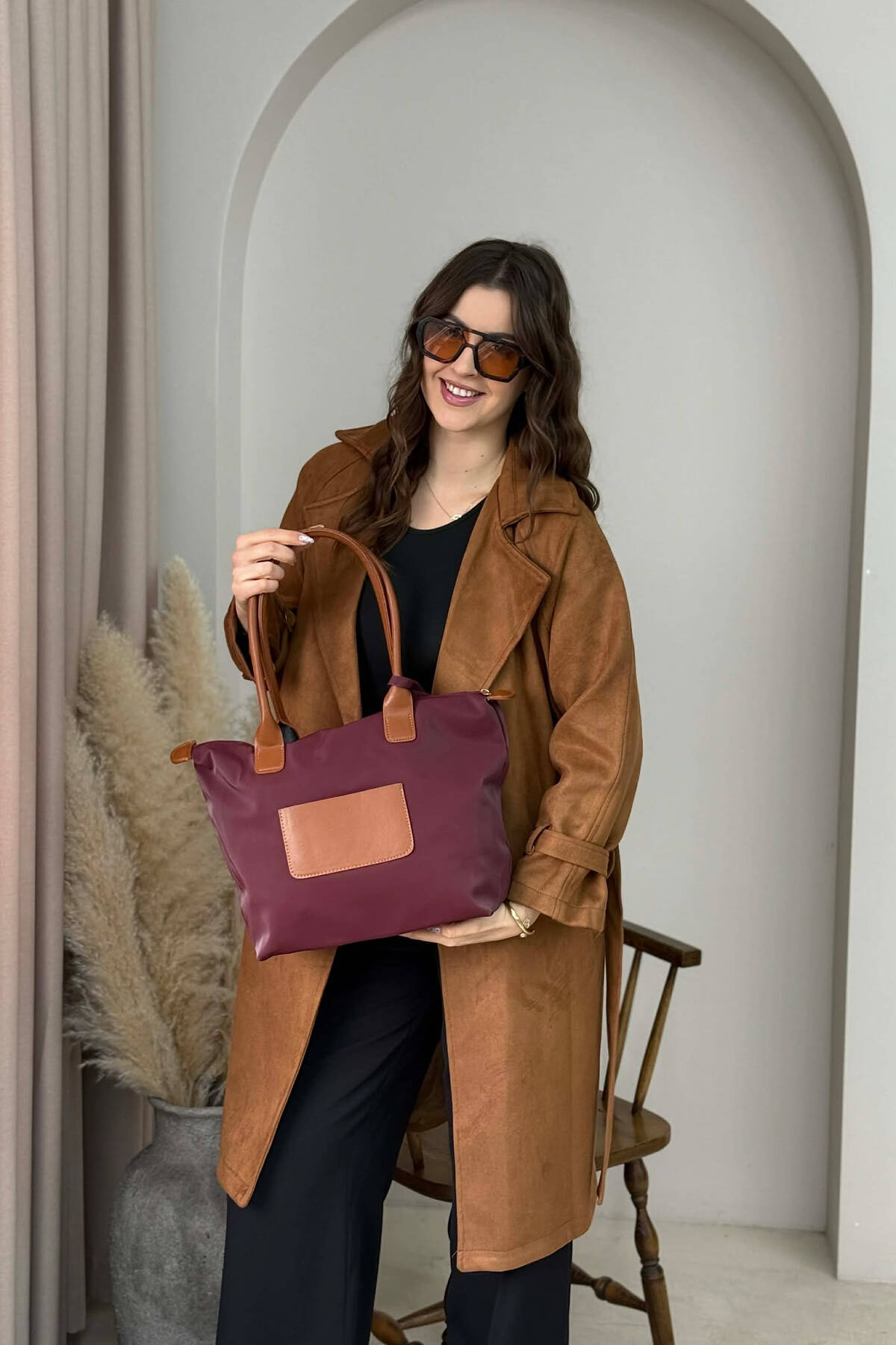 ÇANTE E THJESHTE NJE NGJYRESHE PER FEMRA NE NGJYRE KAFE
