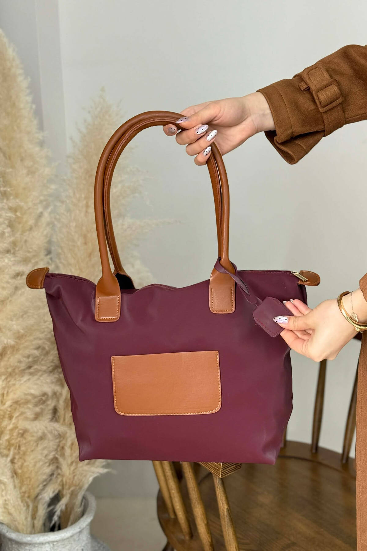 ÇANTE NJE NGJYRESHE ME DETAJIN E SHALLIT DHE ZINXHIR PER FEMRA NE NGJYRE KAFE TE ERRET